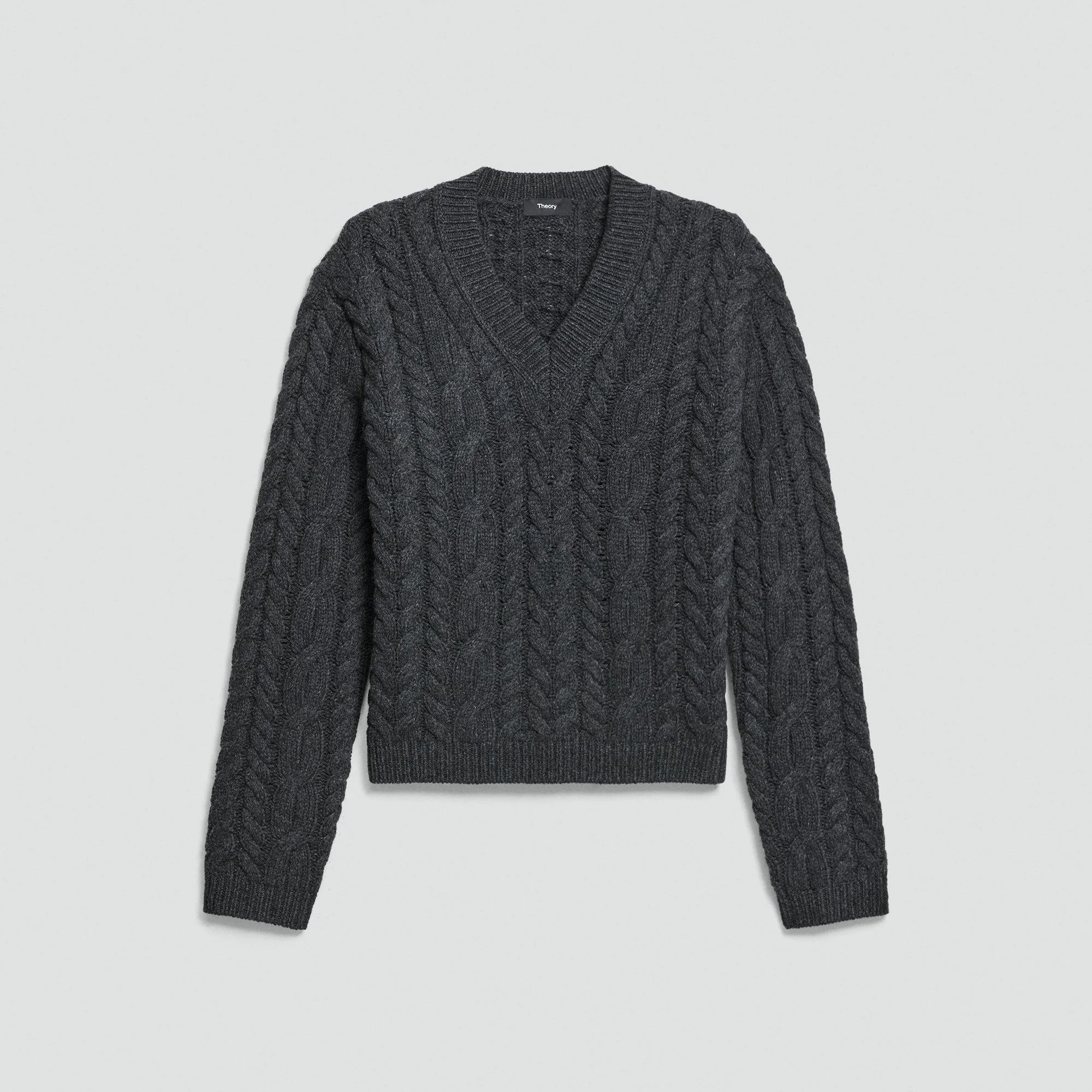 Please enter your email below to be notified when this item is in stock This sweater is crafted along a relaxed fit to balance a v-neckline and slightly cinched sleeves. Finished with rib knit details, this pullover style is knit in a wool-cashmere blend with wool that is sourced from certified responsibly managed farms. It has a felted rib texture that has a luxurious look and an incredibly soft feel. Style #: P0911726 Please enter your email below to be notified when this item is in stock Fit True to size, choose your normal size Relaxed fit, long sleeves Regular length Model is 5’11” and wearing a US size S Materials & Care Composition 90% wool 10% cashmere; exclusive of elastic Care Do not wash. Do not bleach. Do not tumble dry. Cool iron if needed. Dry clean with any solvent except trichloroethylene. Imported