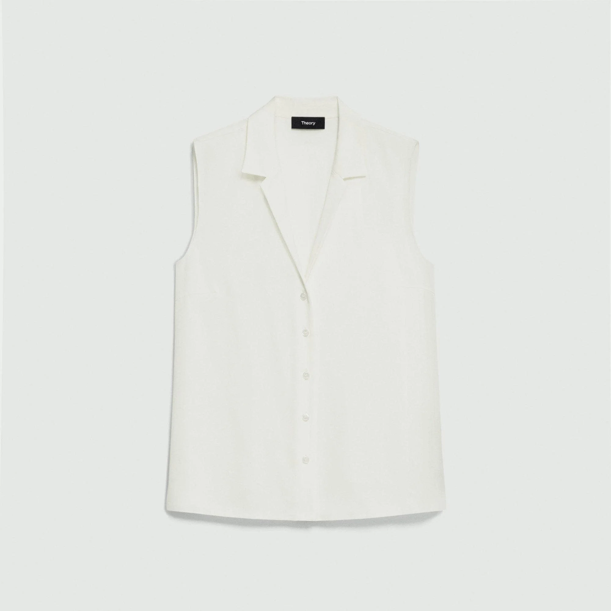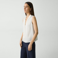 Please enter your email below to be notified when this item is in stock Punctuated with a camp collar, our sleeveless top buttons up the front. This slim-fit blouse is crafted in a lightweight silk georgette that feels light and airy. Our silk georgette is MADE IN GREEN by OEKO-TEX® certified. All products with this certification are made without harmful chemicals, in environmentally and socially responsible facilities. Each component of the garment, the factory, and the mill have been certified by OEKO-TEX®. Style #: P0302508 Please enter your email below to be notified when this item is in stock Fit True to size, choose your normal size Slim fit, sleeveless Hip length Model is 5’11” and wearing a US size S Materials & Care Composition 100% silk Care Do not wash. Do not bleach. Do not tumble dry. Cool iron if needed. Dry clean with any solvent except trichloroethylene. Imported
