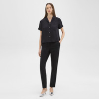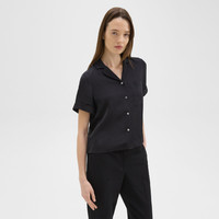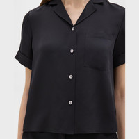 Accented with a patch pocket, this short-sleeve shirt is detailed with a quintessential camp collar. It’s crafted in a lightweight silk georgette that feels light and airy. Our silk georgette is MADE IN GREEN by OEKO-TEX® certified. All products with this certification are made without harmful chemicals, in environmentally and socially responsible facilities. Each component of the garment, the factory, and the mill have been certified by OEKO-TEX®. Style #: N0102514 Fit True to size, choose your normal size Relaxed fit, short sleeves Hip length Model is 5’11” and wearing a US size S Materials & Care Composition 100% silk Care Do not wash. Do not bleach. Do not tumble dry. Cool iron if needed. Dry clean with any solvent except trichloroethylene. Imported