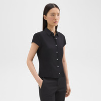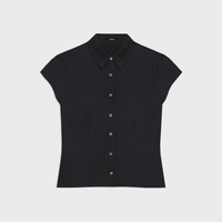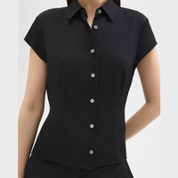 Detailed with a pointed collar, our short is designed with short cap sleeves and button front closures. This slim-fitting style is crafted in a lightweight silk georgette that feels light and airy. Our silk georgette is MADE IN GREEN by OEKO-TEX® certified. All products with this certification are made without harmful chemicals, in environmentally and socially responsible facilities. Each component of the garment, the factory, and the mill have been certified by OEKO-TEX®. Style #: O0102530 Fit True to size, choose your normal size Slim fit, short sleeves Hip length Model is 5’11” and wearing a US size S Materials & Care Composition 100% silk Care Do not wash. Do not bleach. Do not tumble dry. Cool iron if needed. Dry clean with any solvent except trichloroethylene. Imported