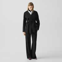 Please enter your email below to be notified when this item is in stock This cardigan-style jacket is designed with a relaxed drape and slightly dropped shoulders. The silhouette is finished with a removable waist tie. Defined by its cropped boxy shape and exaggerated cuffs, this button-front jacket takes cues from classic tailoring. Double-face fabrics are created through a special weaving process that joins two layers of a material in which the most luxurious sides of the fabric face outward. Due to their unique construction, double-faced garments are seamed together with special techniques that result in a clean, refined finish. This elevated process—along with the fabric's superior warmth—allows the garments to be unlined. This fabric is made in Italy of both pre- and post-consumer certified responsibly sourced wool and recycled cashmere as well as virgin fibers. Style #: P0801406 Please enter your email below to be notified when this item is in stock Fit True to size, choose your normal size Relaxed fit, long sleeves Hip length Model is 5’11” and wearing a US size S Materials & Care Composition 90% wool 10% cashmere Care Do not wash. Do not bleach. Do not tumble dry. Cool iron if needed. Dry clean with any solvent except trichloroethylene. Imported