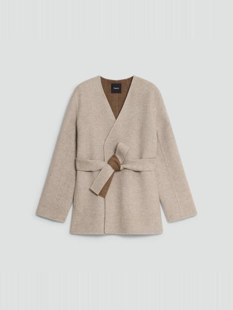 Please enter your email below to be notified when this item is in stock Cut with a relaxed, open-front silhouette, this jacket features clean lines and a self-tie belt to define the waist. Its versatile shape layers easily over everything from tailoring to knits, making it a refined alternative to a blazer. It is meticulously crafted of a wool twill that has a luxurious look and an incredibly soft feel for seasonless appeal. Double-face fabrics are created through a special weaving process that joins two layers of a material in which the most luxurious sides of the fabric face outward. Due to their unique construction, double-faced garments are seamed together with special techniques that result in a clean, refined finish. This elevated process—along with the fabric's superior warmth—allows the garments to be unlined. This fabric is made using wool sourced from certified responsibly managed farms. Style #: P1001404 Please enter your email below to be notified when this item is in stock Fit True to size, choose your normal size Slim fit, long sleeves Hip length Model is 5’11” and wearing a US size S Materials & Care Composition 90% wool 10% cashmere Care Do not wash. Do not bleach. Do not tumble dry. Cool iron with press cloth if needed. Dry clean with any solvent except trichloroethylene. Imported