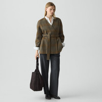 Please enter your email below to be notified when this item is in stock Designed in a brushed plaid wool-cashmere blend, this wrap jacket blends the softness of a cardigan with the structure of a tailored layer. Featuring a double-breasted front, waist-defining belt, and a surplice neckline. Crafted in our double-face wool in a new novelty plaid pattern, it’s soft, structured, and unlined for effortless drape. The dual-layer construction allows both sides of the fabric to face outward—creating a smooth, sculpted finish inside and out. This fabric is made using wool sourced from certified responsibly managed farms in Uruguay. Style #: P0801407 Please enter your email below to be notified when this item is in stock Fit True to size, choose your normal size Relaxed fit, long sleeves Hip length Model is 5’11” and wearing a US size S Materials & Care Composition 95% wool 5% cashmere Care Do not wash. Do not bleach. Do not tumble dry. Dry clean with any solvent except trichloroethylene. Cool iron with press cloth if needed, light steam if needed. Imported