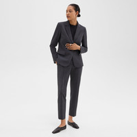 Combining classic menswear details with a refined feminine fit, our Carissa blazer is a two-button silhouette featuring structured shoulders and a darted front. Designed in a slim silhouette, this jacket is detailed with notch lapels, flap pockets, buttoned cuffs, and finished with a soft cupro lining woven with waste cotton fibers. It's tailored in our signature stretch Good Wool. Theory for Good We are committed to making a positive impact on the people who wear our clothes, our industry, and our planet, beginning with our Good fabrics. Consciously manufactured from start to finish, our Good Wool is crafted with premium merino wool. It’s sourced from farms in Australia, including the Beaufront farm in Tasmania and woven by the Tollegno 1900 mill in Biella, Italy. Learn more about our Good Wool. Style #: I0301199 Fit True to size, choose your normal size Slim fit, long sleeves Hip length Model is 5’11” and wearing a US size 2 Materials & Care Composition 96% wool 4% elastane Care Do not wash. Do not bleach. Do not tumble dry. Cool iron if needed. Dry clean with any solvent except trichloroethylene. Imported