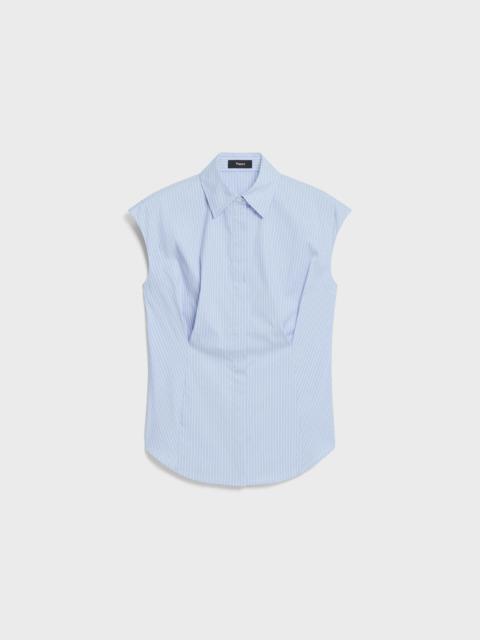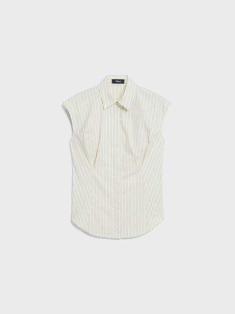 Cinched Cap-Sleeve Shirt in Striped Cotton-Blend