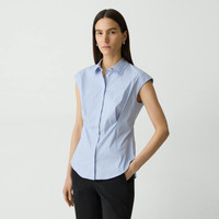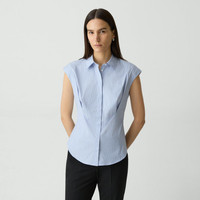 Please enter your email below to be notified when this item is in stock Punctuated with a pointed collar, this button-up shirt is finished with a curved hem and cinched at the waist for a slim fit. This style features a seasonal stripe custom developed on a stretch cotton nylon base. Style #: P0304513 Please enter your email below to be notified when this item is in stock Fit True to size, choose your normal size Slim fit, cap sleeves Hip length Model is 5’11” and wearing a US size S Materials & Care Composition 75% cotton 22% nylon 3% spandex Care Do not wash. Do not bleach. Do not tumble dry. Cool iron if needed. Dry clean with any solvent except trichloroethylene. Imported