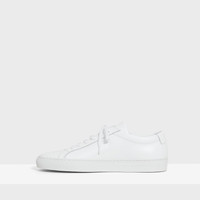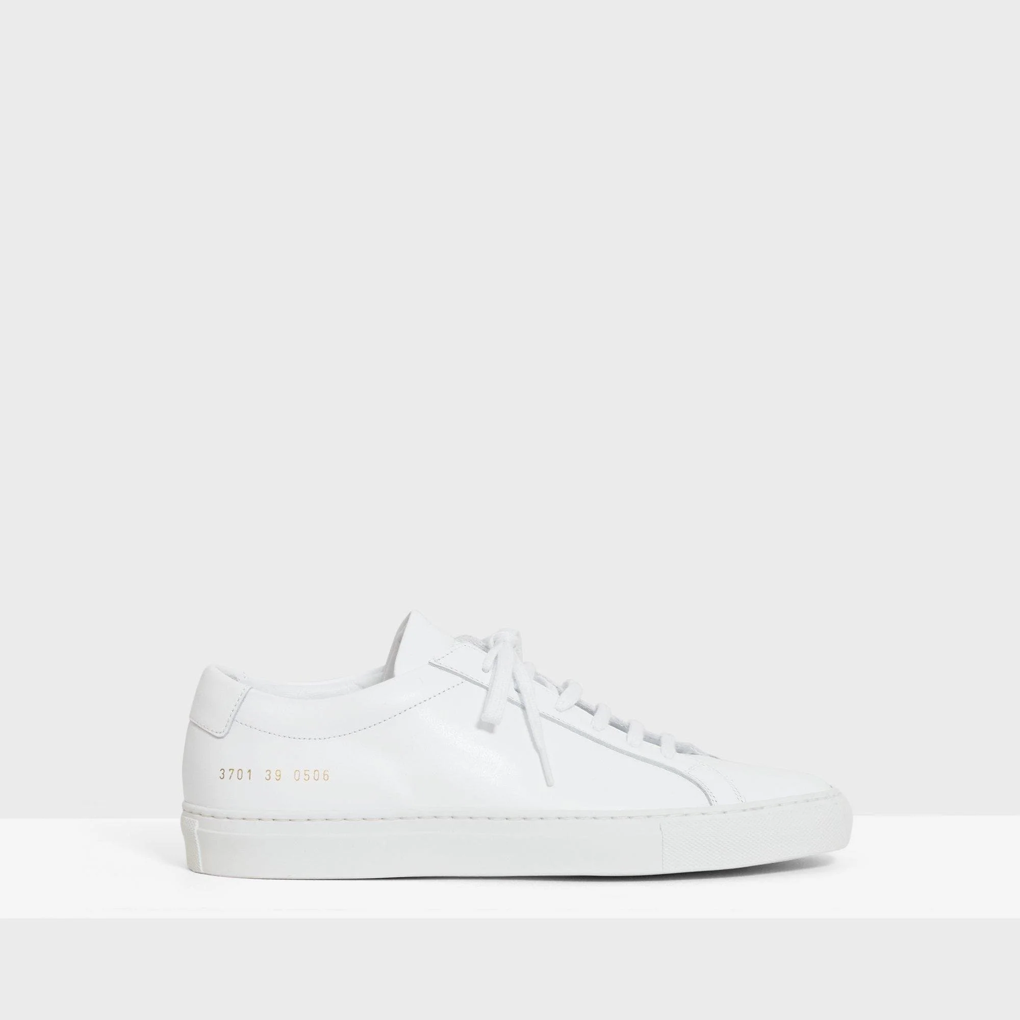 Common Projects’ Original Achilles sneakers are crafted from soft, white leather and stamped with their signature gold numbers. Perfect from the office to out, these minimalist low-top sneakers have a white rubber sole and leather lining. Style #: G042304X Fit Fits true to size If in between sizes, we recommend sizing up Materials & Care Composition upper: 100% leather; sole: 100% rubber Care Spot clean or professional leather clean only. Made in Italy.