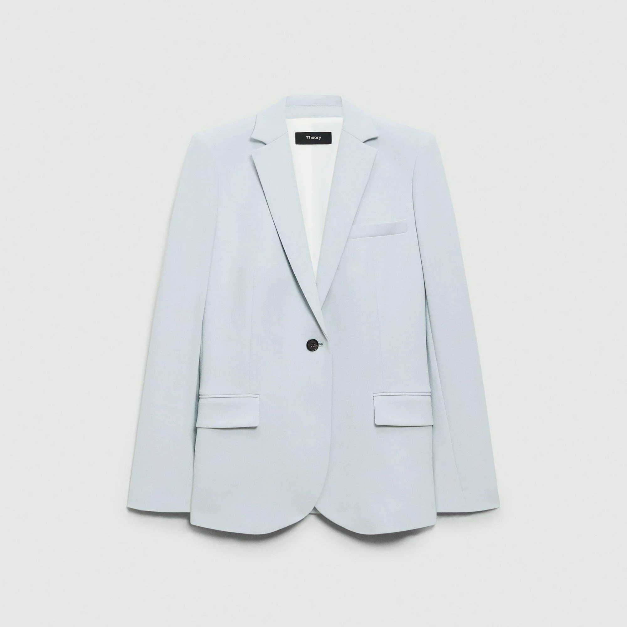 Our Staple blazer is a slim-fitting silhouette that’s lightly constructed and features a single-button front closure and notch lapels. Offered in our signature Japanese Admiral Crepe, it’s detailed with an angled chest pocket, cutaway front, and waist flap pockets. We are committed to positively impacting the people who wear our clothes, our industry, and our planet, beginning with our fabrics. Our signature Admiral Crepe is woven with triacetate, a fabric made from acetic acid and wood pulp sourced from sustainably managed forests. Style #: J0709113 Fit True to size, choose your normal size Slim fit, long sleeves Hip length Model is 5’11” and wearing a US size 2 Materials & Care Composition 70% triacetate 30% polyester Care Do not wash. Do not bleach. Do not tumble dry. Cool iron if needed. Dry clean with any solvent except trichloroethylene. Imported