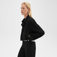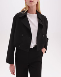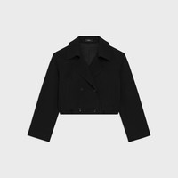 Detailed with an interior drawstring hem to achieve a versatile silhouette, this cropped trench is cut for an oversized fit with notched lapels. Punctuated with a double-breasted front, this version is cut from our signature Japanese Admiral Crepe for a softly draped fit that maintains a polished appearance. We are committed to positively impacting the people who wear our clothes, our industry, and our planet, beginning with our fabrics. Our signature crepe is woven with triacetate, a fabric made from acetic acid and wood pulp sourced from certified responsibly managed forests. Style #: O0709408 Fit Runs big, we recommended sizing down for a more tailored fit Oversized fit, long sleeves Waist length Model is 5’11” and wearing a US size S Materials & Care Composition 70% triacetate 30% polyester Care Do not wash. Do not bleach. Do not tumble dry. Cool iron if needed. Dry clean with any solvent except trichloroethylene. Imported