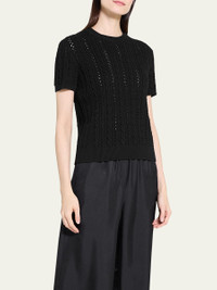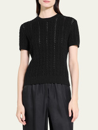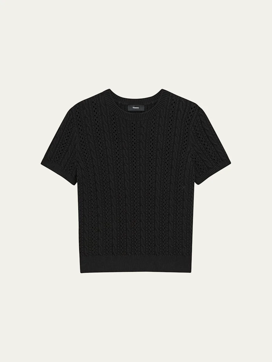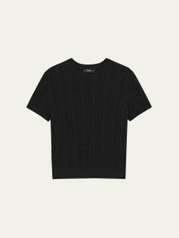Theory cable-knit tee Crew neckline Short sleeves; approx. 14"L Easy fit Hem sits at the hip Pullover style Cotton Imported Online Inquiries: BGS21_T6Z4W| Store Inquiries: #5073477