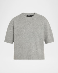 Theory easy tee with wide sleeves and a ribbed finish Approx. 20.5"L from shoulder to hem Crew neckline Short sleeves Cropped length Pullover style Cashmere Dry clean Imported