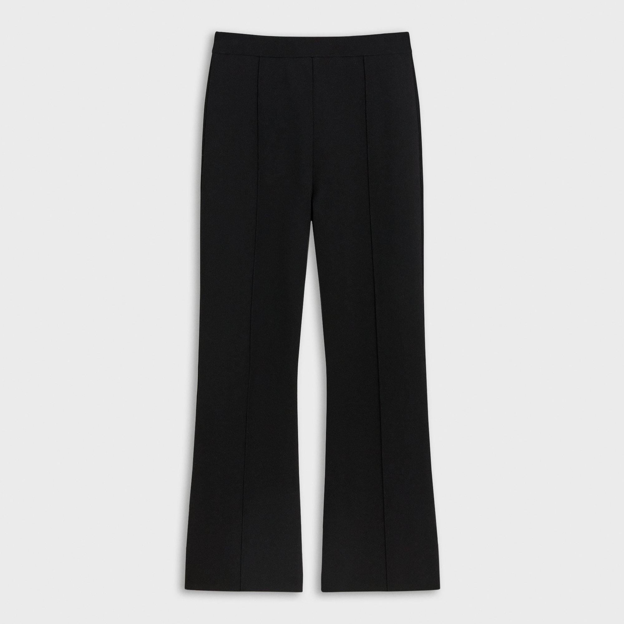 Our flared pant is knit with a ribbed elastic waistband for an easy pull-on silhouette. This effortless style is crafted with viscose that is made with wood pulp sourced from responsibly managed forests. Style #: M1116709 Fit True to size, choose your normal size Mid rise, flared leg Cropped Model is 5’11” and wearing a US size S Materials & Care Composition 62% viscose 21% recycled nylon 13% polyester 4% spandex; exclusive of trim Care Machine wash cold, gentle cycle. Do not bleach. Lay flat to dry in shade. Cool iron if needed. Dry clean with any solvent except trichloroethylene. Imported
