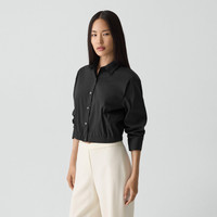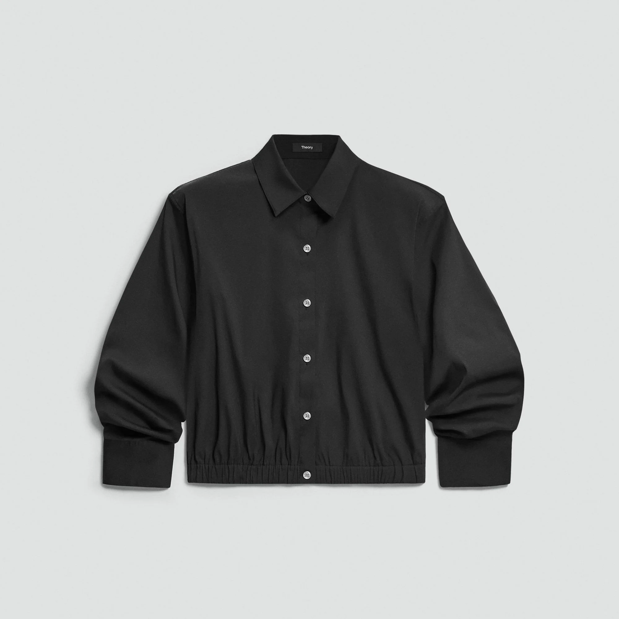 Please enter your email below to be notified when this item is in stock An elevated classic, this button-front shirt is cropped along a straight cut that feels cool yet sophisticated in our stretch Good Cotton that looks crisp and keeps you comfortable year round. A pointed collar and elbow-length sleeves detail the menswear-inspired silhouette. Theory for Good Our Good Cotton is made with extra-long staple, American-grown SUPIMA® cotton, which is recognized as one of the softest and most durable cottons in the world. To ensure this cotton is verifiably traceable, we have partnered with Oritain™, which uses forensic science to validate our SUPIMA® cotton from the farm to the mill in Italy where it is responsibly woven into cloth. Learn more about our Good Cotton. Style #: P0204510 Please enter your email below to be notified when this item is in stock Fit True to size, choose your normal size Relaxed fit, elbow-length sleeves Cropped length Model is 5’11” and wearing a US size S Materials & Care Composition 72% cotton 23% nylon 5% spandex Care Do not wash. Do not bleach. Do not tumble dry. Cool iron if needed. Dry clean with any solvent except trichloroethylene. Imported