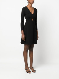 cut-out mini dress black cut-out detailing V-neck three-quarter length sleeves flared skirt straight hem above-knee length Imported Composition Viscose 83%, Polyester 17% SIZE & FIT Model measurements Height 5 ft 10 in(1.77 m) Bust/Chest 29.92 in(76 cm) Hips 34.25 in(87 cm) Waist 23.62 in(60 cm) FittingInformation This piece fits true to size. We recommend you get your regular size Designed for a close fit at the bust, waist and hips Made with a mid-weight fabric Washing instructions Dry Clean Only