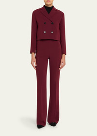 Theory "Demitria" knit flared pants High rise Elastic waistband Relaxed fit Full length Triacetate/polyester Made in USA from imported materials Online Inquiries: BGS21_T8TJV| Store Inquiries: #1888942