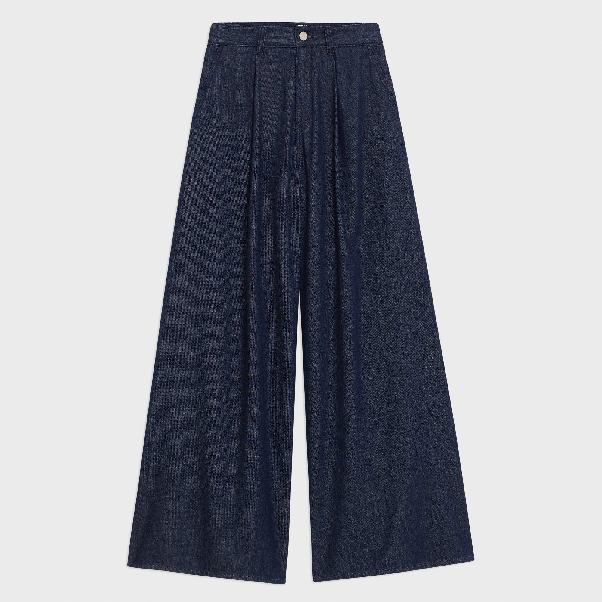 This new addition to our denim lineup is pleated along a high waistline with a relaxed, wide leg. These jeans are crafted in a soft, fluid denim with beautiful drape produced in Turkey by a leading denim supplier. Style #: O0104215 Fit True to size, choose your normal size High rise, wide leg Full length Model is 5’11” and wearing a US size 2 Materials & Care Composition 100% cotton Care Machine wash cold, gentle cycle, wash separately. Do not bleach. Tumble dry low. Cool iron if needed. Dry clean with any solvent except trichloroethylene. Imported