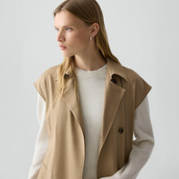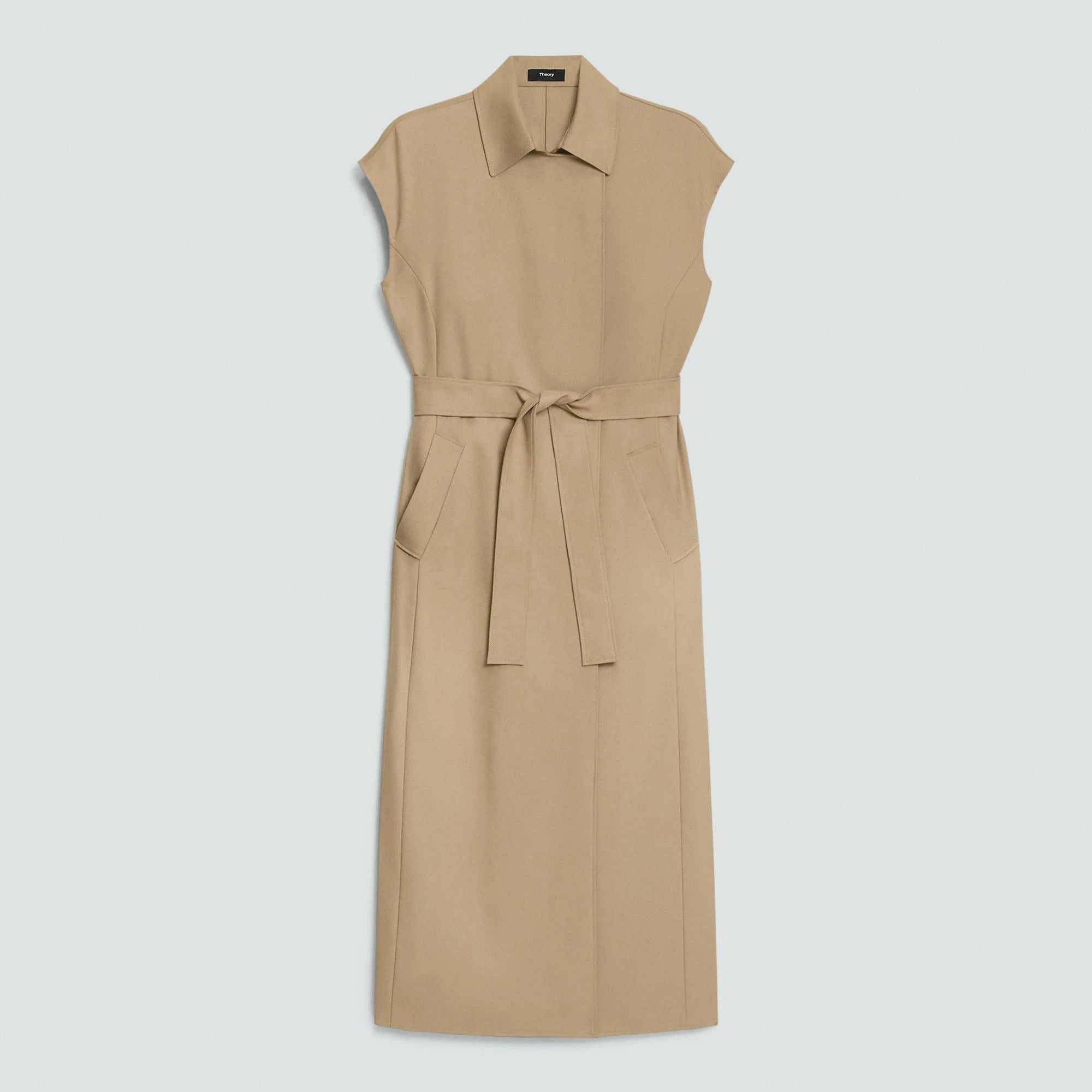 Please enter your email below to be notified when this item is in stock This column dress leans into sharp lines with a double-breasted structure. A crisp collar and waist-cinching belt bring tailored sensibility to one-and-done dressing. Finished with a hidden button placket and welt pockets, it’s crafted with a blend of certified recycled polyester made from waste and wool sourced from certified responsibly managed farms. Style #: P0801603 Please enter your email below to be notified when this item is in stock Fit True to size, choose your normal size Relaxed fit, cap sleeves Midi length Model is 5’11” and wearing a US size S Materials & Care Composition 40% wool 29% polyester 28% viscose 3% spandex Care Do not wash. Do not bleach. Do not tumble dry. Cool iron if needed. Dry clean with any solvent except trichloroethylene. Imported