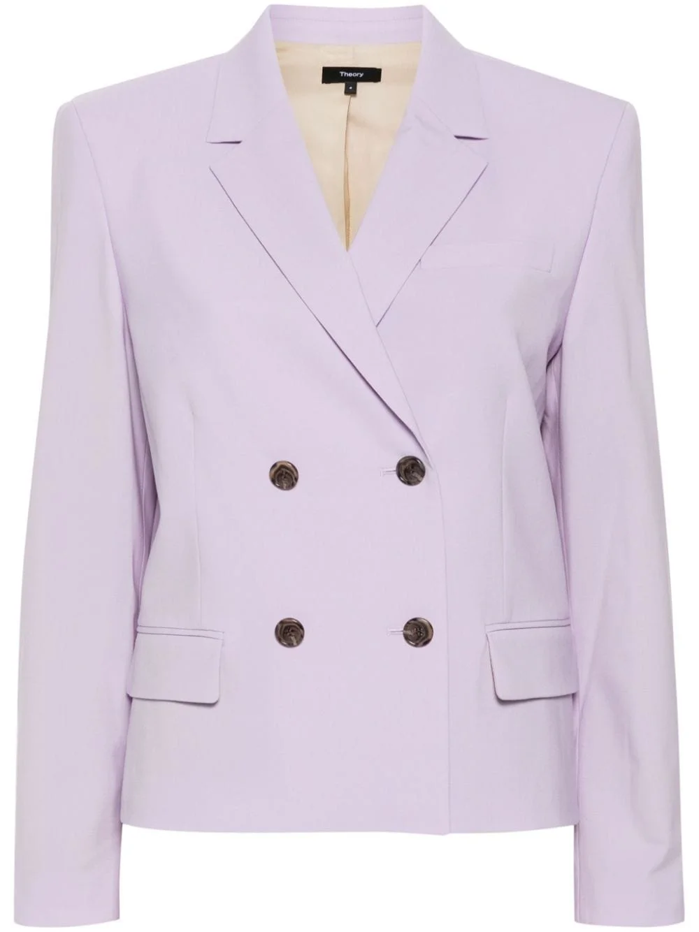 double-breasted blazer Highlights - Lilac purple - Stretch-wool - Notched lapels - Shoulder pads - Chest welt pocket - Long sleeves with buttoned cuffs - Front dart detailing - Two front flap pockets - Full lining - Straight hem - Double-breasted button fastening Imported Composition Outer: Wool 96%, Spandex/Elastane 4% Lining: Cupro 100% SIZE & FIT Model measurements Height 5 ft 9 in(1.76 m) Bust/Chest 31.88 in(81 cm) Hips 35.43 in(90 cm) Waist 24.8 in(63 cm) FittingInformation Designed for a relaxed fit, this piece allows for comfort and movement when worn The internal shoulder pads offer a structured shape Made from a midweight fabric This piece fits true to size – take your usual size Washing instructions Dry Clean Only
