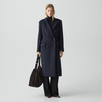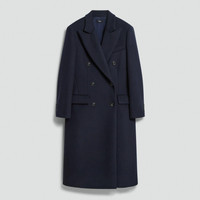 Please enter your email below to be notified when this item is in stock This double-breasted coat is tailored with peak lapels, a longline silhouette, and flap pockets. Designed with an oversized fit, it layers easily over knits or tailoring while maintaining a sharp structured shape. It’s crafted using plush wool sourced from certified responsibly managed farms and certified recycled polyamide made from pre-consumer waste. Style #: P0901413 Please enter your email below to be notified when this item is in stock Fit True to size, choose your normal size Oversized fit, long sleeves Long length Model is 5’11” and wearing a US size S Materials & Care Composition 72% virgin wool 23% polyamide 5% cashmere Care Do not wash. Do not bleach. Do not tumble dry. Cool iron if needed. Dry clean with any solvent except trichloroethylene. Imported