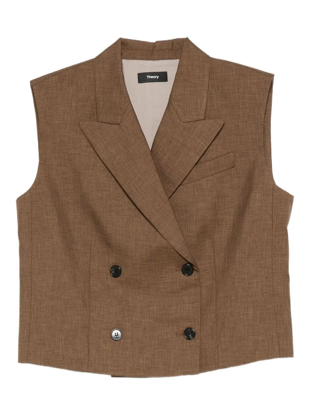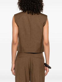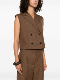 double-breasted sleeveless waistcoat Highlights - Brown - Double-breasted closure - Peak lapel - Sleeveless - Straight hem - Button fastening Imported Composition Lining: Polyester 100% Outer: Polyester 100% SIZE & FIT Model measurements Height 5 ft 10 in(1.79 m) Bust/Chest 31.88 in(81 cm) Hips 35.43 in(90 cm) Waist 23.62 in(60 cm) Washing instructions Dry Clean Only