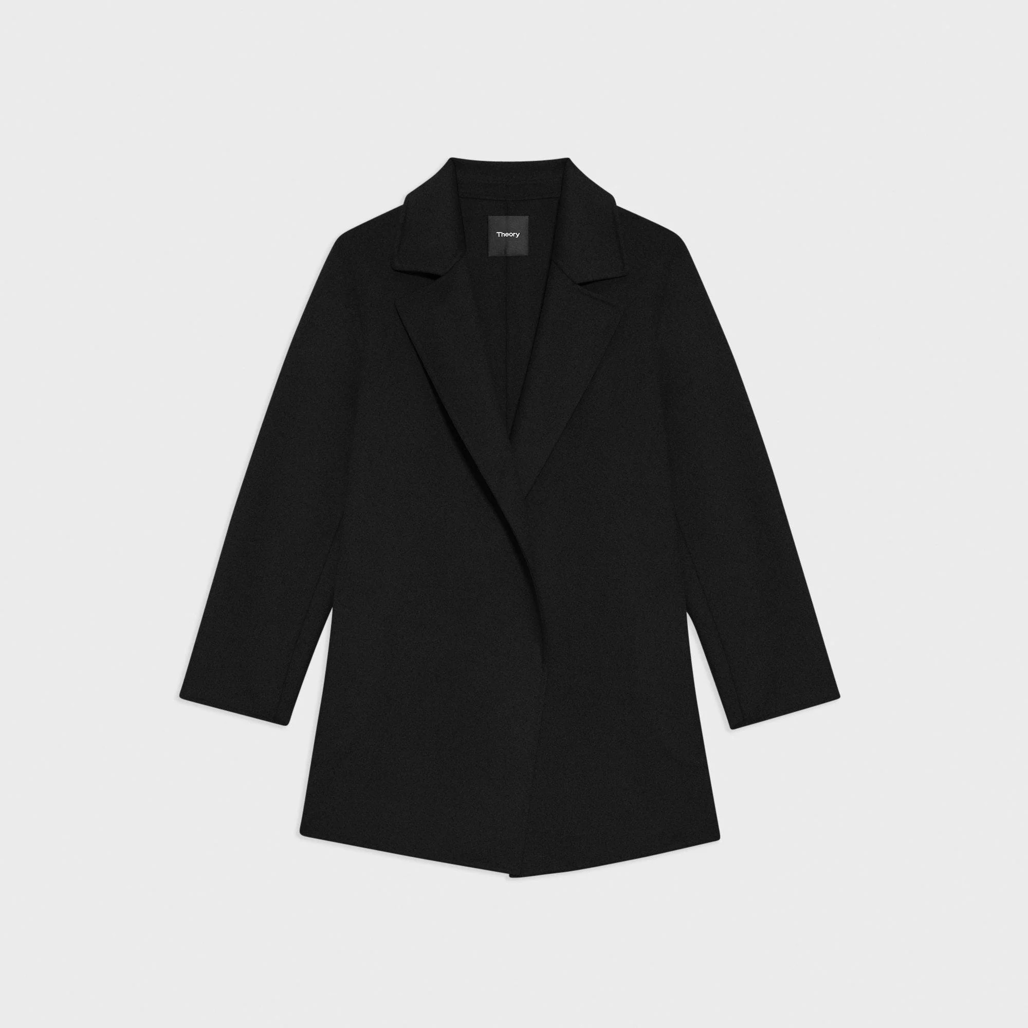 Please enter your email below to be notified when this item is in stock Our Clairene jacket is cut for a relaxed, open-front silhouette in our double-faced wool-cashmere with slim bracelet-length sleeves and side slip pockets. Double-face fabrics are created through a special weaving process that joins two layers of a material in which the most luxurious sides of the fabric face outward. Due to their unique construction, double-faced garments are seamed together with special techniques that result in a clean, refined finish. This elevated process—along with the fabric's superior warmth—allows the garments to be unlined. We are committed to making a positive impact on the people who wear our clothes, our industry, and our planet, beginning with our Good fabrics. This fabric is made in Italy of both pre and post-consumer recycled wool and cashmere as well as virgin fibers. Style #: K0701412 Please enter your email below to be notified when this item is in stock Fit True to size, choose your normal size Relaxed fit, bracelet sleeves Hip length Model is 5’11” and wearing a US size S Materials & Care Composition 90% wool 10% cashmere Care Do not wash. Do not bleach. Do not tumble dry. Cool iron if needed. Dry clean with any solvent except trichloroethylene. Imported