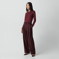 Please enter your email below to be notified when this item is in stock This wide-leg trouser is tailored with double pleats that emphasize its high-rise cut and elongated silhouette. Finished with a zip fly, it offers a refined, voluminous shape. Cut from fine Italian wool flannel that’s soft, lightweight, and has a sophisticated look. This wool is traceable to the certified responsibly managed Malahide farm in Tasmania, Australia, and is consciously woven by the Botto Giuseppe mill in Biella, Italy. Style #: O0801202 Please enter your email below to be notified when this item is in stock Fit True to size, choose your normal size High rise, wide leg Full length Model is 5’11” and wearing a US size 2 Materials & Care Composition 100% virgin wool Care Do not wash. Do not bleach. Do not tumble dry. Warm iron if needed. Dry clean with any solvent except trichloroethylene. Imported