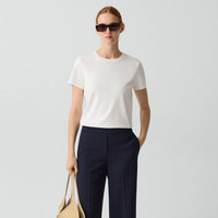 Please enter your email below to be notified when this item is in stock This everyday tee is cut for a relaxed, boxy fit with short sleeves. Finished with a crew neckline, it’s crafted of sleek cotton with a subtle sheen and natural stretch. Style #: Q0224529 Please enter your email below to be notified when this item is in stock Materials & Care Composition 100% cotton Care Machine wash cold, gentle cycle, with similar colors and wash inside out. Do not bleach. Lay flat to dry in shade, do not tumble dry. Cool iron if needed. Do not dry clean. Imported