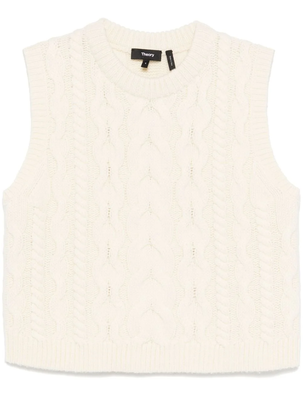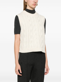 cable-knit vest Highlights - White - Wool-cashmere blend - Cable knit - Ribbed crew neck - Sleeveless - Ribbed cuffs and hem Imported Composition Wool 90%, Cashmere 10% SIZE & FIT Model measurements Height 5 ft 9 in(1.75 m) Bust/Chest 31.88 in(81 cm) Hips 34.64 in(88 cm) Waist 24.01 in(61 cm) FittingInformation Designed for a relaxed fit, this piece allows for comfort and movement when worn Made with a midweight knit, this piece offers some stretch
