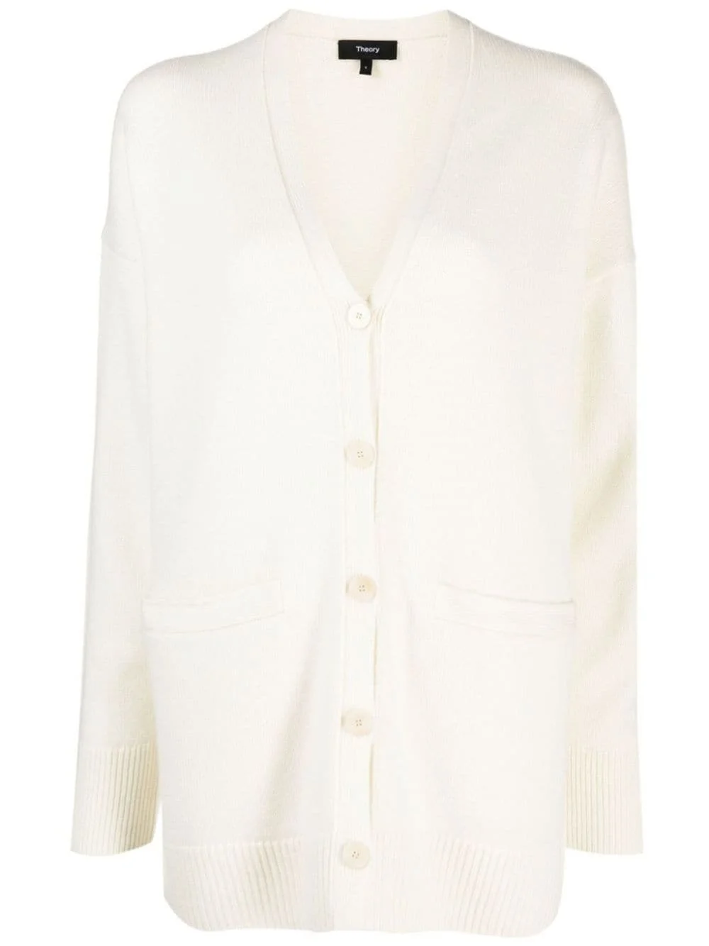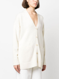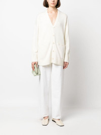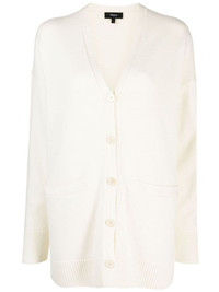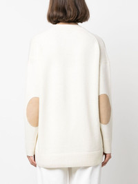 fine-knit elbow-patch cardigan Highlights - Ivory white - Lambskin/wool-cashmere blend - Fine knit - Elbow patches - Plunging v-neck - Front button fastening - Long sleeves - Ribbed cuffs and hem - Straight hem Imported Composition Lamb Skin 100%, Wool 70%, Cashmere 30% SIZE & FIT Model measurements Height 5 ft 10 in(1.77 m) Bust/Chest 31.1 in(79 cm) Hips 35.03 in(89 cm) Waist 23.62 in(60 cm) FittingInformation Designed for a relaxed fit, this piece allows for comfort and movement when worn Made with a midweight knit, this piece offers some stretch This piece fits true to size – take your usual size Washing instructions Specialist Cleaning