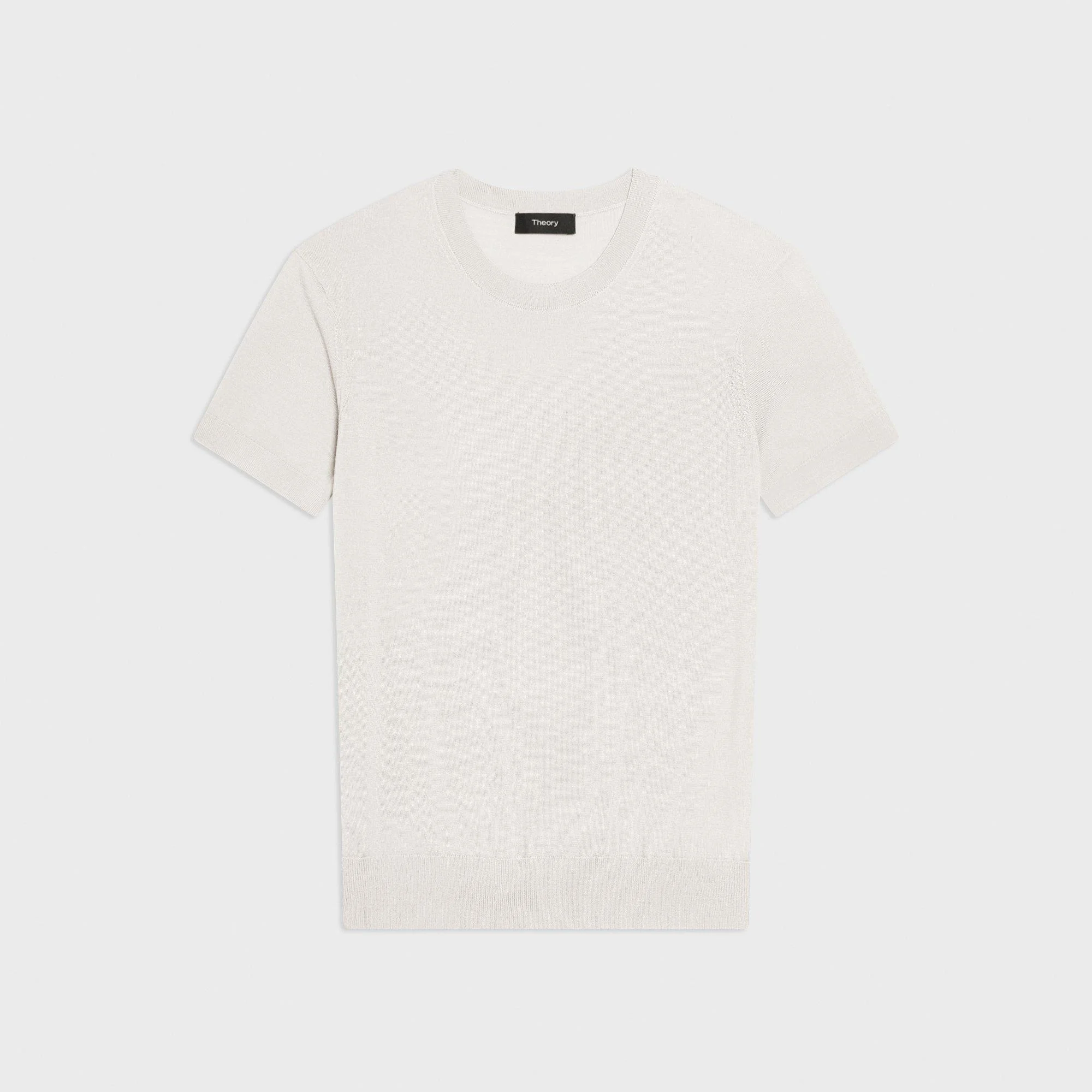 This short-sleeve tee features a crew neck and classic ribbed trim. Perfect for lightweight layering, this sweater is crafted in a fine-gauge merino wool from Australia that’s spun and knit in Italy. We are committed to making a positive impact on the people who wear our clothes, our industry, and our planet, beginning with our Good fabrics. This single-origin sourced wool is fully traceable to Congi Farm, located in Woolbrook, New South Wales, Australia. This luxury yarn is produced by Botto Giuseppe, a forward-thinking mill and leader in sustainability, located in Biella, Italy. Style #: I1211701 Fit True to size, choose your normal size Slim fit, short sleeves Hip length Model is 5’10” and wearing a US size S Materials & Care Composition 100% wool; exclusive of elastic Care Hand wash cold. Do not bleach. Lay flat to dry in shade, do not tumble dry. Cool iron if needed. Dry clean with any solvent except trichloroethylene. Imported