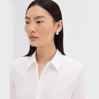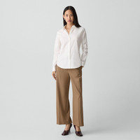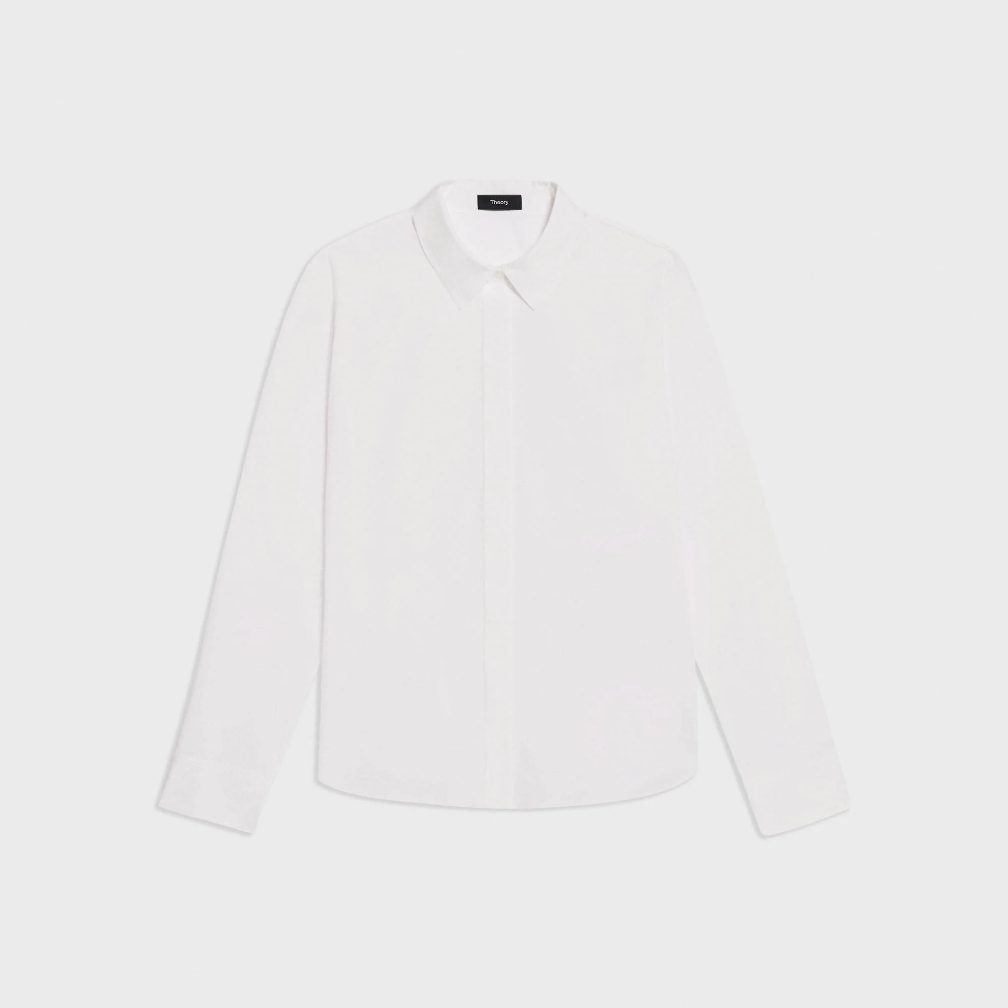 Our classic fitted shirt is tailored in a polished, feminine shape that can be worn alone or under a blazer. It’s detailed with a hidden button placket, adjustable cuffs, mother-of-pearl buttons, and a rounded hem. It's cut from our stretch Good Cotton that looks crisp and keeps you comfortable year round. Theory for Good We are committed to making a positive impact on the people who wear our clothes, our industry, and our planet, beginning with our Good fabrics. Our Good Cotton is made with extra-long staple, American-grown SUPIMA® cotton, which is recognized as one of the softest and most durable cottons in the world. To ensure this cotton is verifiably traceable, we have partnered with Oritain™, which uses forensic science to validate our SUPIMA® cotton from the farm to the mill in Italy where it is woven into cloth. Learn more about our Good Cotton. Style #: M0104525 Fit True to size, choose your normal size Slim fit, long sleeves Hip length Model is 5’11” and wearing a US size S Materials & Care Composition 72% cotton 23% nylon 5% spandex Care Machine wash cold, gentle cycle. Do not bleach. Hang to dry in shade, do not tumble dry. Cool iron if needed. Dry clean with any solvent except trichloroethylene. Imported
