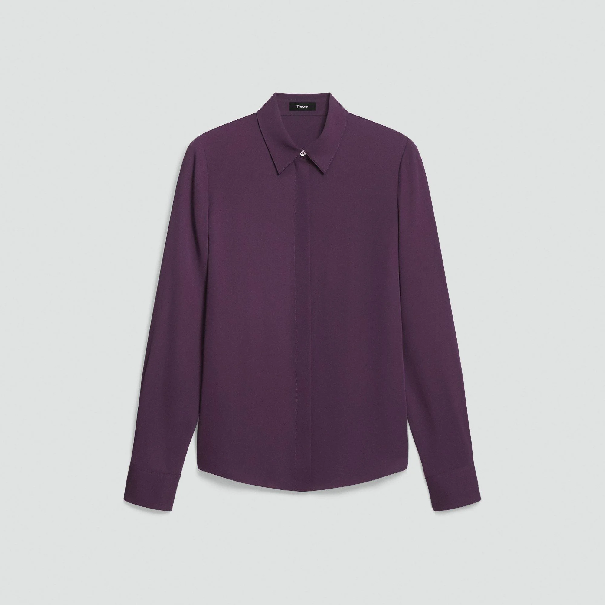 Please enter your email below to be notified when this item is in stock Our classic fitted shirt is tailored in a polished, feminine shape that can be worn alone or under a blazer. It’s detailed with a hidden button placket, adjustable cuffs, mother-of-pearl buttons, and a rounded hem. Crafted with our lightweight, breathable silk georgette with an elegant drape that’s easy to style all year round. Our silk georgette is MADE IN GREEN by OEKO-TEX® certified. All products with this certification are made without harmful chemicals, in environmentally and socially responsible facilities. Each component of the garment, the factory, and the mill have been certified by OEKO-TEX®. Style #: M0102536 Please enter your email below to be notified when this item is in stock Fit True to size, choose your normal size Slim fit, long sleeves Regular length Model is 5’11” and wearing a US size S Materials & Care Composition 100% silk Care Do not wash. Do not bleach. Do not tumble dry. Cool iron if needed. Dry clean with any solvent except trichloroethylene. Imported