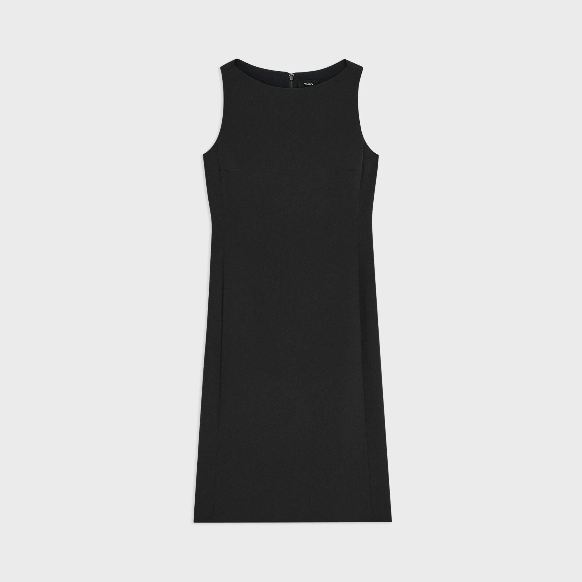 This sleeveless dress is tailored in a feminine silhouette with an elegant bateau neckline, subtly flared hem, and an invisible back zip closure for ease of wear. It’s constructed with our signature Japanese crepe for a smooth, wrinkle-resistant finish and softly draped fit that maintains a polished appearance. Style #: L0109606 Fit True to size, choose your normal size Flared silhouette, sleeveless Knee length Model is 5’11” and wearing a US size 2 Materials & Care Composition 70% triacetate 30% polyester Care Do not wash. Do not bleach. Do not tumble dry. Cool iron if needed. Dry clean with any solvent except trichloroethylene. Imported