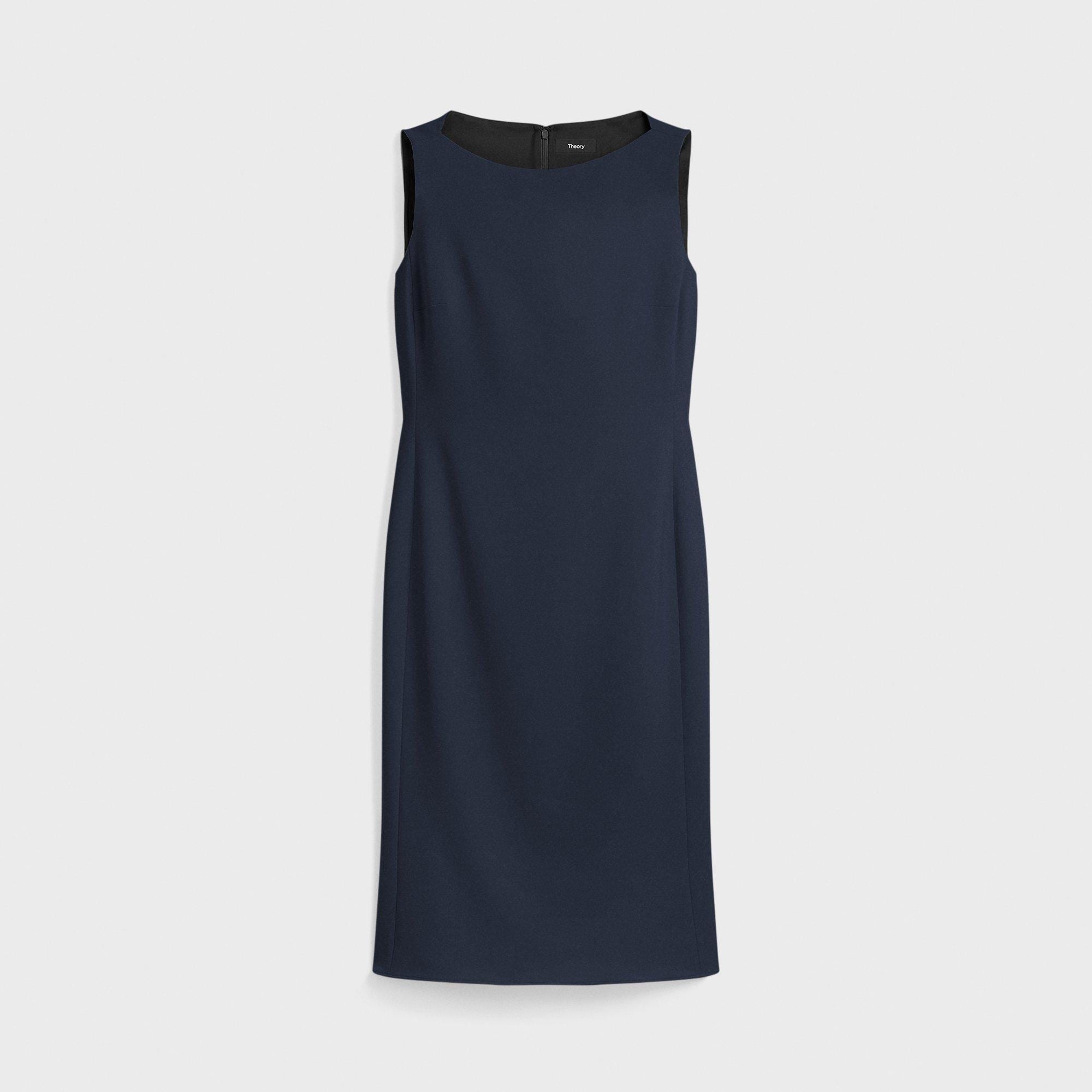 This sleeveless dress is tailored in a feminine silhouette with an elegant bateau neckline, subtly flared hem, and an invisible back zip closure for ease of wear. It’s constructed with our signature Japanese crepe for a smooth, wrinkle-resistant finish and softly draped fit that maintains a polished appearance. Style #: L0109606 Fit True to size, choose your normal size Flared silhouette, sleeveless Knee length Model is 5’11” and wearing a US size 2 Materials & Care Composition 70% triacetate 30% polyester Care Do not wash. Do not bleach. Do not tumble dry. Cool iron if needed. Dry clean with any solvent except trichloroethylene. Imported