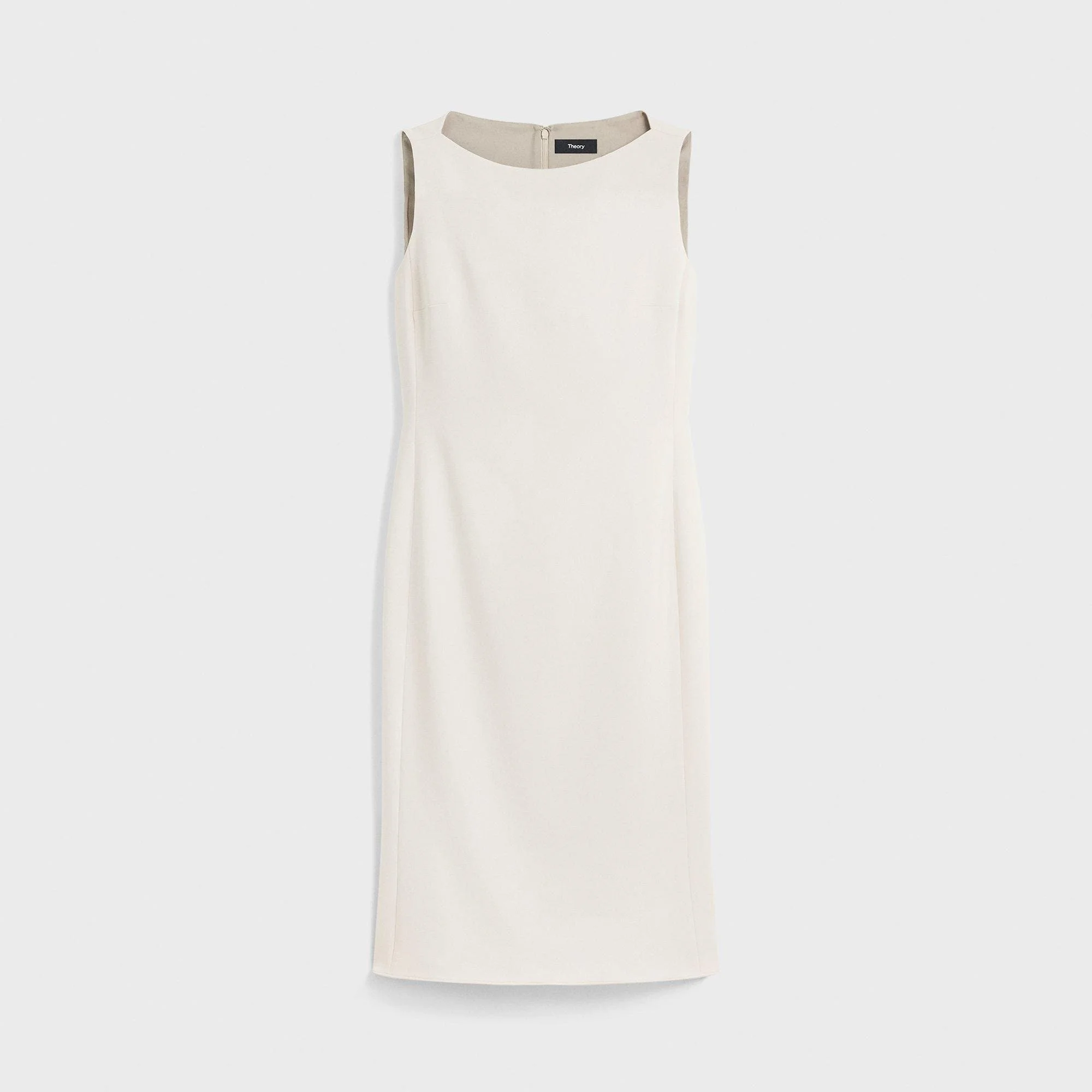 This sleeveless dress is tailored in a feminine silhouette with an elegant bateau neckline, subtly flared hem, and an invisible back zip closure for ease of wear. It’s constructed with our signature Japanese crepe for a smooth, wrinkle-resistant finish and softly draped fit that maintains a polished appearance. Style #: L0109606 Fit True to size, choose your normal size Flared silhouette, sleeveless Knee length Model is 5’11” and wearing a US size 2 Materials & Care Composition 70% triacetate 30% polyester Care Do not wash. Do not bleach. Do not tumble dry. Cool iron if needed. Dry clean with any solvent except trichloroethylene. Imported
