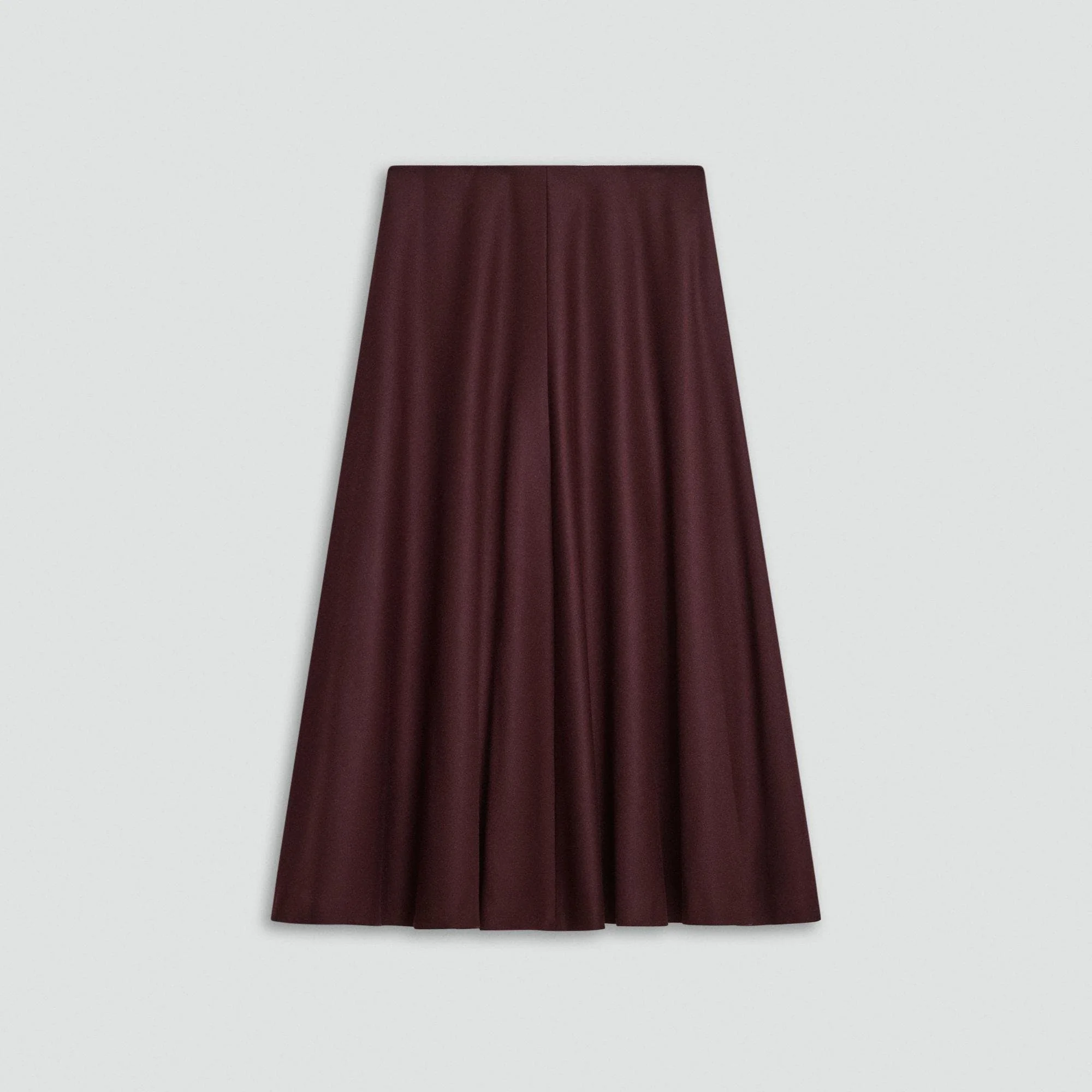 Please enter your email below to be notified when this item is in stock Clean lines meet subtle volume in this full-circle midi skirt, shaped with a structured waistband, angled seams, and a fluid drape. Finished with a concealed zip for a smooth profile. Crafted in Sleek Flannel—our smooth, lightweight wool with just enough stretch. Pairs effortlessly with a tailored jacket or fitted knit. This wool is traceable to the certified responsibly managed Malahide farm in Tasmania, Australia, and is consciously woven by the Botto Giuseppe mill in Biella, Italy. Style #: P0801301 Please enter your email below to be notified when this item is in stock Fit True to size, choose your normal size High rise, flared silhouette Midi length Model is 5’11” and wearing a US size 2 Materials & Care Composition 100% virgin wool Care Do not wash. Do not bleach. Do not tumble dry. Cool iron if needed. Dry clean with any solvent except trichloroethylene. Professional dry clean with petroleum solvent only. Imported