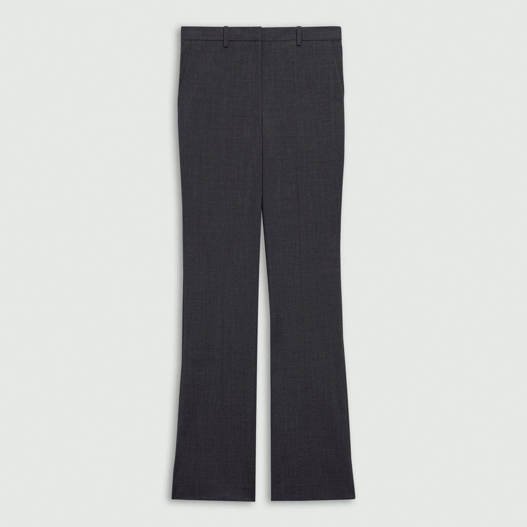 This version of our flared pant is tailored for a slim silhouette with a shorter inseam, hook-and-bar zip fly, and side slip pockets. These trousers are cut from our Good Wool with a hint of stretch for a relaxed feel. Theory for Good Theory’s Good Wool is crafted with premium merino wool, sourced from certified responsibly managed farms in Australia and woven by the Tollegno 1900 mill in Biella, Italy. Learn more about our Good Wool. Style #: P0101209 Fit True to size, choose your normal size Mid rise, slim leg 29’’ inseam Model is 5’11” and wearing a US size 2 Materials & Care Composition 96% wool 4% elastane Care Do not wash. Do not bleach. Do not tumble dry. Cool iron if needed. Dry clean with any solvent except trichloroethylene. Imported
