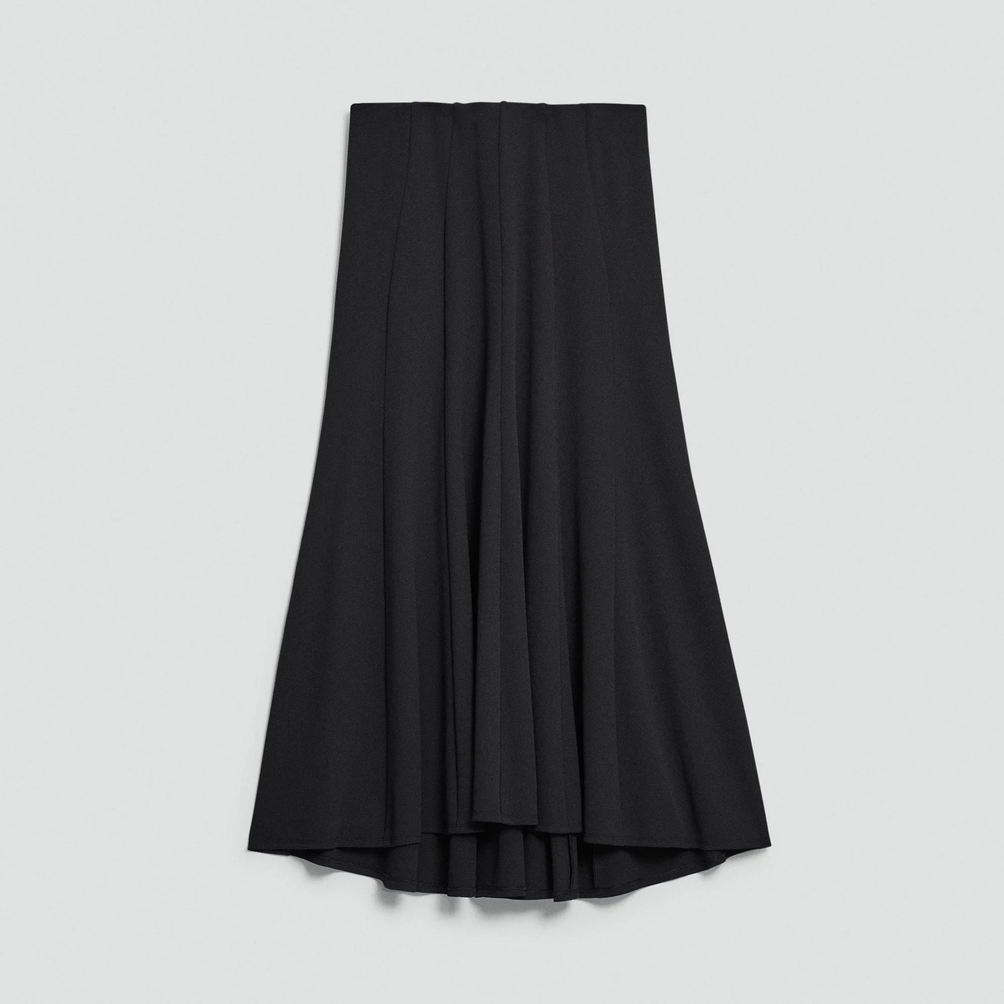Please enter your email below to be notified when this item is in stock An elegantly fluted silhouette with seam detailing defines this high-waisted midi skirt. Designed to pull on with an elasticized waistband, it’s crafted with an Italian crepe jersey with an elegant drape. Style #: P0725301 Please enter your email below to be notified when this item is in stock Fit True to size, choose your normal size Midi length Model is 5’11” and wearing a US size S Materials & Care Composition 100% polyester Care Hand wash cold. Do not bleach. Lay flat to dry in shade, do not tumble dry. Cool iron if needed. Dry clean with any solvent except trichloroethylene. Imported