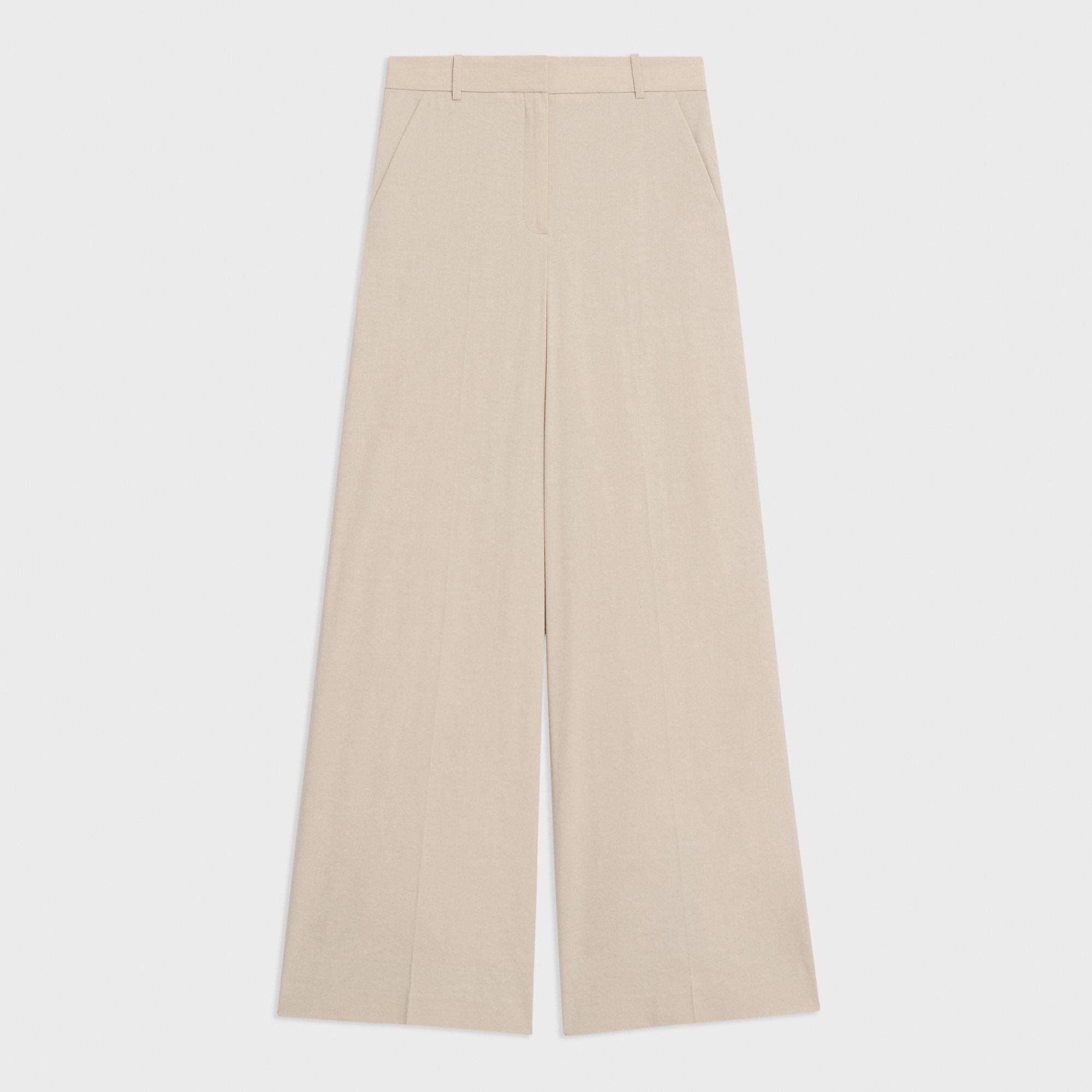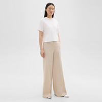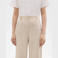 With a pressed front and a button-zip closure, this high-waist, wide-leg trouser is crafted in our signature stretch Good Linen for all-day ease. Theory for Good We are committed to making a positive impact on the people who wear our clothes, our industry, and our planet, beginning with our Good Collection fabrics. Woven by the Marini & Cecconi Mill in Prato, Italy, Good Linen is our signature stretch linen fabric, made up of three fibers—flax sourced from France, viscose made from repurposed waste cotton fibers, and recycled elastane for stretch. Learn more about our Good Linen. Style #: O0203210 Fit True to size, choose your normal size High rise, Wide leg Full length Model is 5’11” and wearing a US size 2 Materials & Care Composition 62% linen 36% viscose 2% elastane Care Do not wash. Do not bleach. Do not tumble dry. Cool iron if needed. Dry clean with any solvent except trichloroethylene. Imported