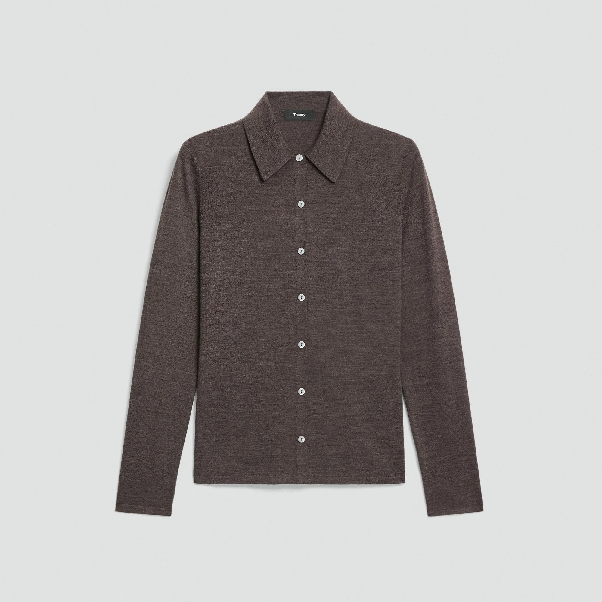 Please enter your email below to be notified when this item is in stock This button-up shirt is an elevated take on a classic silhouette. Cut for a sophisticated slim fit, it’s crafted in a fine-gauge merino wool from Australia that’s spun and knit in Italy. This single-origin sourced wool is fully traceable to Congi Farm, located in Woolbrook, New South Wales, Australia. This luxury yarn is produced by Botto Giuseppe, a forward-thinking mill and leader in sustainability, located in Biella, Italy. Style #: P0711707 Please enter your email below to be notified when this item is in stock Fit True to size, choose your normal size Regular length Model is 5’11” and wearing a US size S Materials & Care Composition 100% wool; exclusive of elastic Care Do not wash. Do not bleach. Do not tumble dry. Cool iron if needed. Dry clean with any solvent except trichloroethylene. Imported