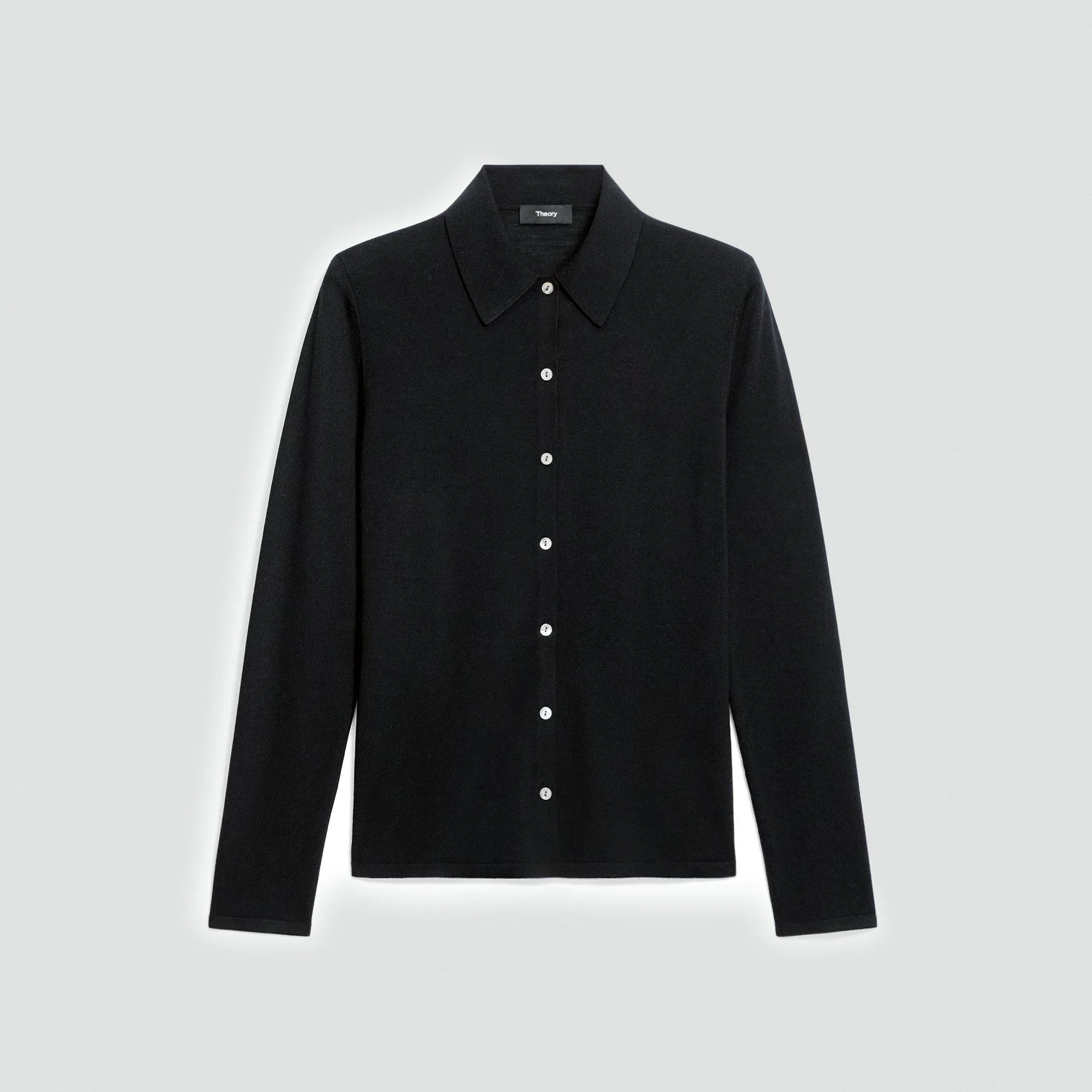 Please enter your email below to be notified when this item is in stock This button-up shirt is an elevated take on a classic silhouette. Cut for a sophisticated slim fit, it’s crafted in a fine-gauge merino wool from Australia that’s spun and knit in Italy. This single-origin sourced wool is fully traceable to Congi Farm, located in Woolbrook, New South Wales, Australia. This luxury yarn is produced by Botto Giuseppe, a forward-thinking mill and leader in sustainability, located in Biella, Italy. Style #: P0711707 Please enter your email below to be notified when this item is in stock Fit True to size, choose your normal size Regular length Model is 5’11” and wearing a US size S Materials & Care Composition 100% wool; exclusive of elastic Care Do not wash. Do not bleach. Do not tumble dry. Cool iron if needed. Dry clean with any solvent except trichloroethylene. Imported