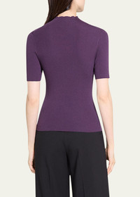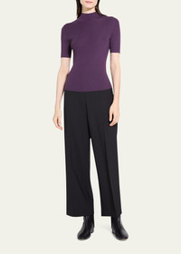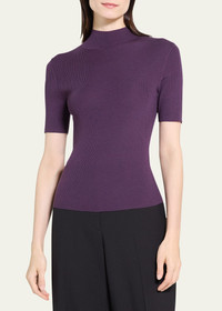 Leenda Regal Merino Wool Short-Sleeve Mock-Neck Top