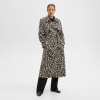 Our relaxed approach to the classic trench coat is designed with a double-breasted front, buttoned epaulets, and pointed collar. It’s detailed with a buckle belted waist and hip welt pocket for a refined finish. Designed with a custom leopard print by our team of artisans, this jacket is crafted from a stretch suiting blend from expert printers in Italy using certified responsibly sourced wool from ethically run farms. Style #: O0801408 Fit True to size, choose your normal size Relaxed fit, long sleeves Below-the-knee length Model is 5’11” and wearing a US size S Materials & Care Composition 98% virgin wool 2% elastane Care Do not wash. Do not bleach. Do not tumble dry. Cool iron if needed. Dry clean with any solvent except trichloroethylene. Imported