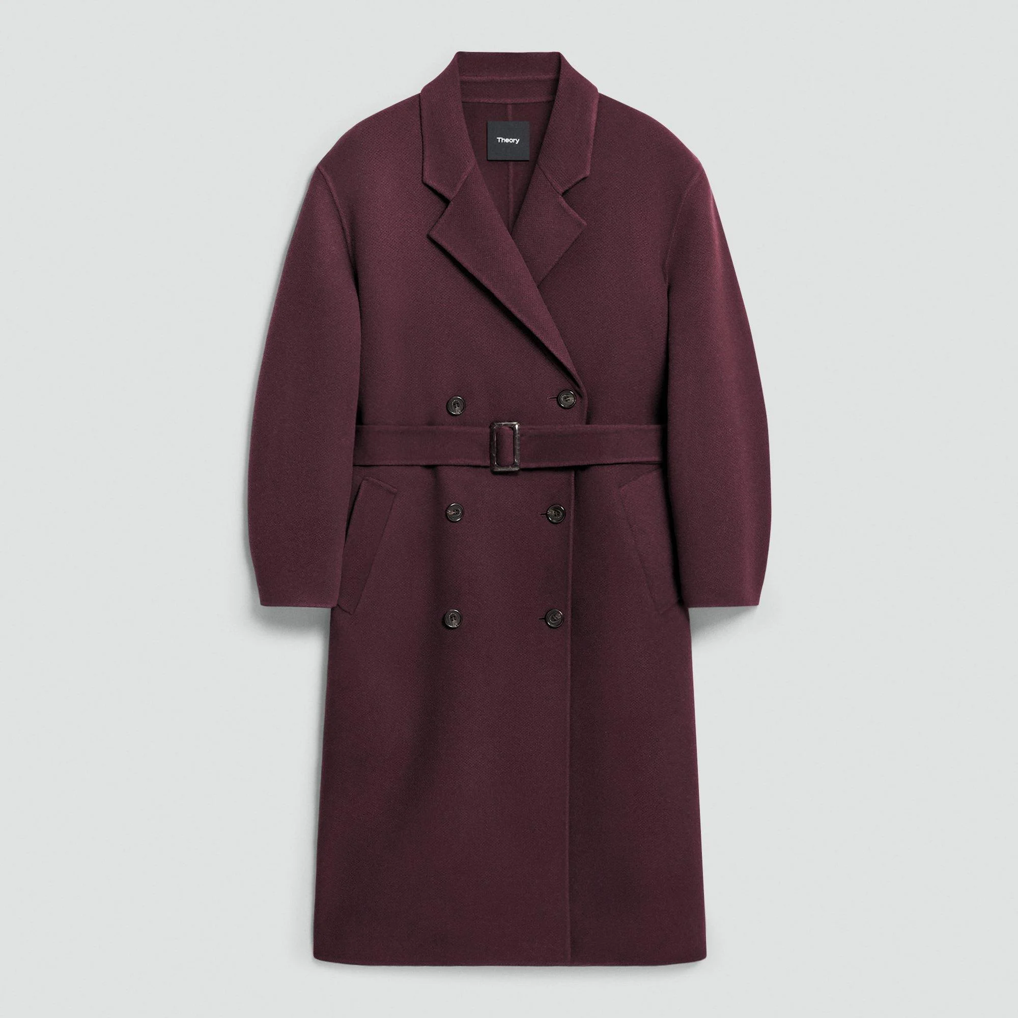 Please enter your email below to be notified when this item is in stock Cut with a double-breasted front and a straight, elongated silhouette, this trench coat is detailed with notched lapels and angled welt pockets. Its clean lines make it an ideal top layer, whether shrugged over tailoring or worn open with relaxed separates. It’s crafted in certified recycled cashmere and wool sourced from certified responsibly managed farms. It has a soft hand and substantial weight that offers warmth through the season. This fabric is made in Italy of both pre- and post-consumer certified responsibly sourced wool and certified recycled cashmere as well as virgin fibers. Style #: P0901411 Please enter your email below to be notified when this item is in stock Fit True to size, choose your normal size Oversized fit, long sleeves Long length Model is 5’11” and wearing a US size S Materials & Care Composition 90% wool 10% cashmere Care Do not wash. Do not bleach. Do not tumble dry. Cool iron if needed. Dry clean with any solvent except trichloroethylene. Imported