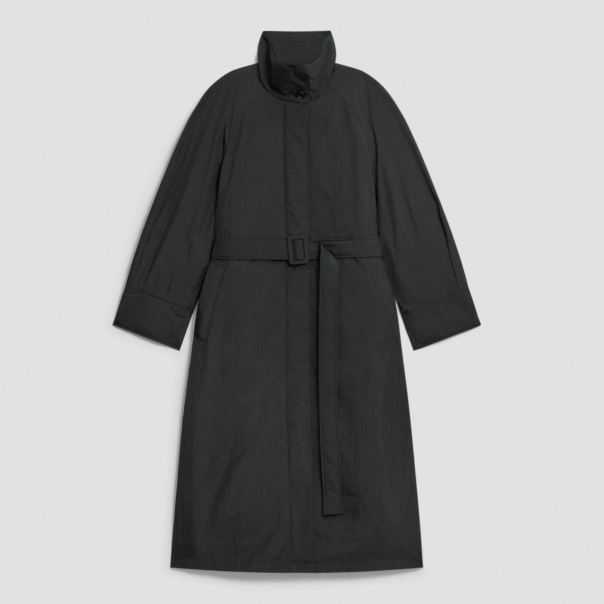 Please enter your email below to be notified when this item is in stock Designed with a high funnel neck, belted waist, and button-front closure, this long parka offers full coverage in a streamlined silhouette. Cut with a straight fit that layers easily over winter separates, it balances utility with a clean, minimal finish. The fabric is crafted from certified recycled nylon sourced from pre-consumer waste, offering a lightweight yet durable construction. Style #: P0906419 Please enter your email below to be notified when this item is in stock Fit True to size, choose your normal size Oversized fit, long sleeves Long length Model is 5’11” and wearing a US size S Materials & Care Composition 100% nylon Care Do not wash. Do not bleach. Do not tumble dry. Cool iron if needed. Dry clean with any solvent except trichloroethylene. Imported