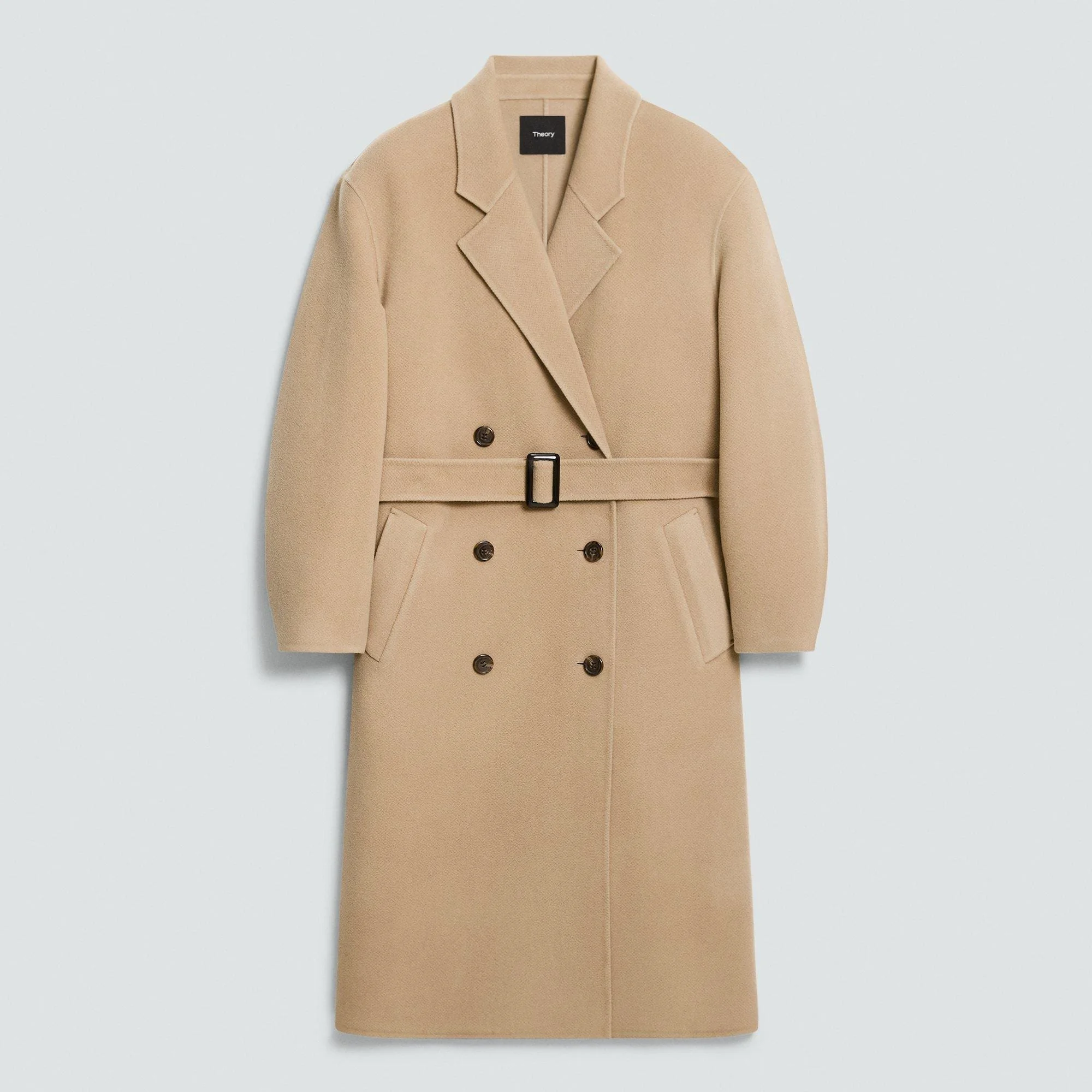 Please enter your email below to be notified when this item is in stock Cut with a double-breasted front and a straight, elongated silhouette, this coat is detailed with a point collar and angled welt pockets. Its clean lines make it an ideal top layer, whether shrugged over tailoring or worn open with relaxed separates. It’s crafted in certified recycled cashmere and wool sourced from certified responsibly managed farms. It has a soft hand and substantial weight that offers warmth through the season. This fabric is made in Italy of both pre- and post-consumer certified responsibly sourced wool and certified recycled cashmere as well as virgin fibers. Style #: P0901411 Please enter your email below to be notified when this item is in stock Fit True to size, choose your normal size Oversized fit, long sleeves Long length Model is 5’11” and wearing a US size S Materials & Care Composition 90% wool 10% cashmere Care Do not wash. Do not bleach. Do not tumble dry. Cool iron if needed. Dry clean with any solvent except trichloroethylene. Imported