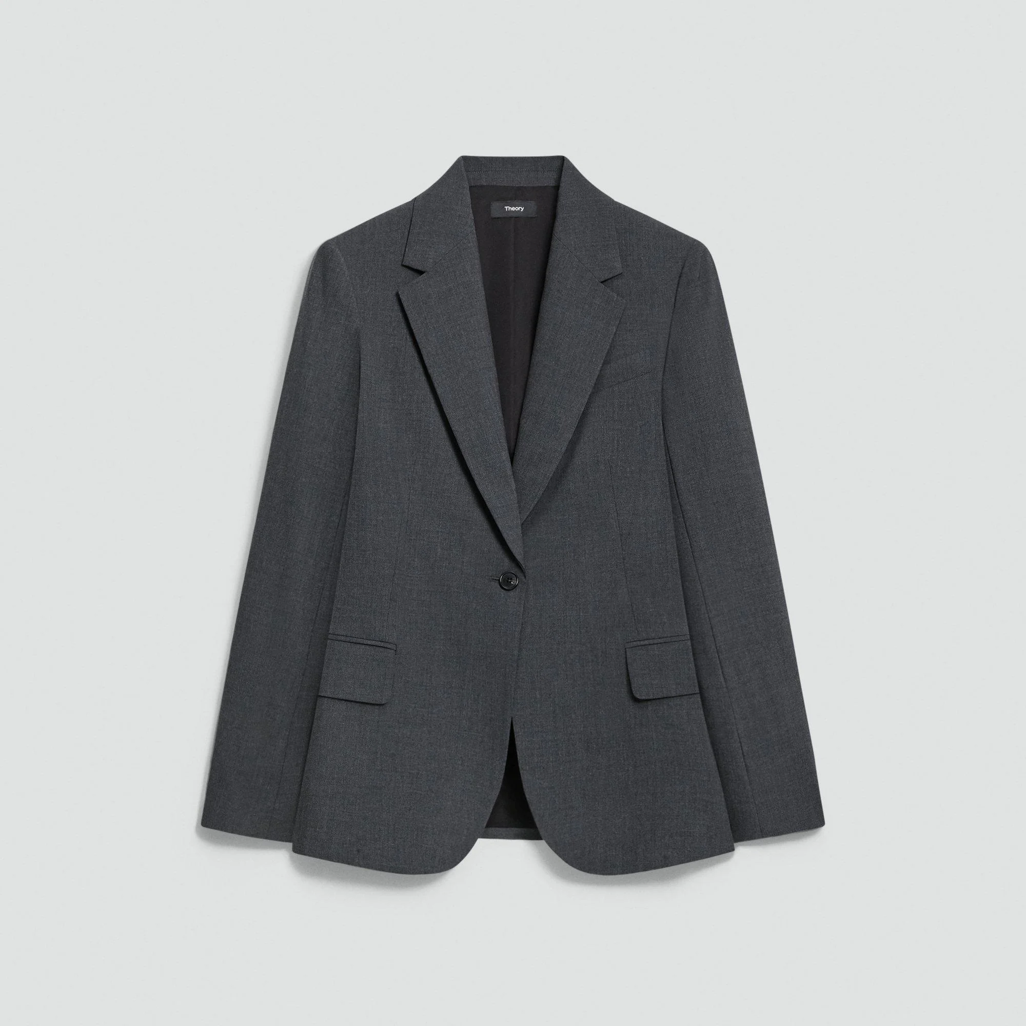 Please enter your email below to be notified when this item is in stock Tailored with a slim silhouette and a nipped-in waist, our Lynnia blazer is detailed with notch lapels, a single-button closure, and flap pockets. It's crafted with Good Wool with a hint of stretch for a relaxed feel. Theory for Good Theory’s Good Wool is crafted with premium merino wool. It’s sourced from certified responsibly managed farms in Australia, and woven by the Tollegno 1900 mill in Biella, Italy. Learn more about our Good Wool. Style #: P0201109 Please enter your email below to be notified when this item is in stock Fit True to size, choose your normal size Slim fit, long sleeves Regular length Model is 5’11” and wearing a US size 2 Materials & Care Composition 96% wool 4% elastane Care Do not wash. Do not bleach. Do not tumble dry. Cool iron if needed. Dry clean with any solvent except trichloroethylene. Imported