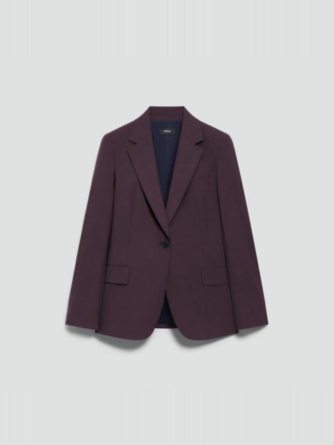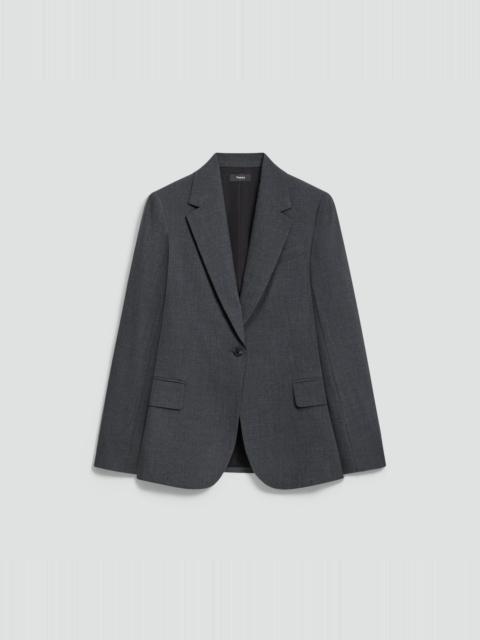Please enter your email below to be notified when this item is in stock Tailored with a slim silhouette and a nipped-in waist, our Lynnia blazer is detailed with notch lapels, a single-button closure, and flap pockets. It's crafted with extremely fine Good Wool for a soft-hand feel and beautiful drape. Theory for Good Theory’s Good Wool is crafted with premium merino wool. It’s sourced from certified responsibly managed farms in Australia, and woven by the Tollegno 1900 mill in Biella, Italy. Learn more about our Good Wool. Style #: P0201109 Please enter your email below to be notified when this item is in stock Fit True to size, choose your normal size Slim fit, long sleeves Regular length Model is 5’11” and wearing a US size 2 Materials & Care Composition 96% wool 4% elastane Care Do not wash. Do not bleach. Do not tumble dry. Cool iron if needed. Dry clean with any solvent except trichloroethylene. Imported