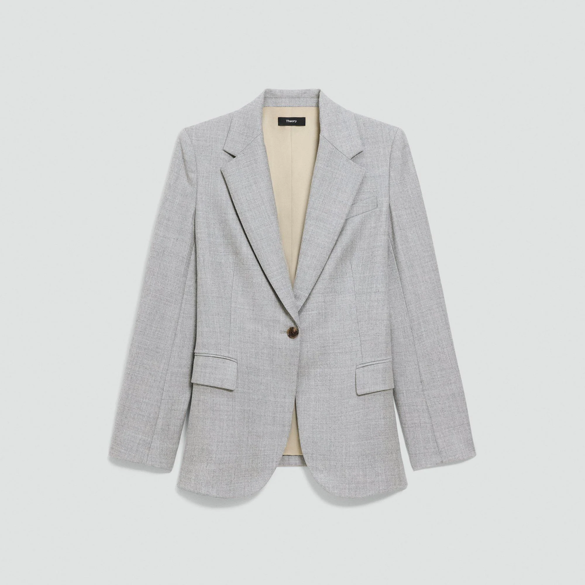 Please enter your email below to be notified when this item is in stock The Lynnia Blazer is tailored with a precisely defined waist, structured shoulders, and a single-button closure. Designed with notch lapels and flap pockets, its sleek proportions create a sharp silhouette. It's crafted from fine Italian wool flannel that’s soft, lightweight and has a sophisticated look. Pair it with a trouser or denim and a tee. This wool is traceable to the certified responsibly managed Malahide farm in Tasmania, Australia, and is consciously woven by the Botto Giuseppe mill in Biella, Italy. Style #: P0801103 Please enter your email below to be notified when this item is in stock Fit True to size, choose your normal size Slim fit, long sleeves Regular length Model is 5’11” and wearing a US size 2 Materials & Care Composition 100% virgin wool Care Do not wash. Do not bleach. Do not tumble dry. Warm iron if needed. Dry clean with any solvent except trichloroethylene. Imported