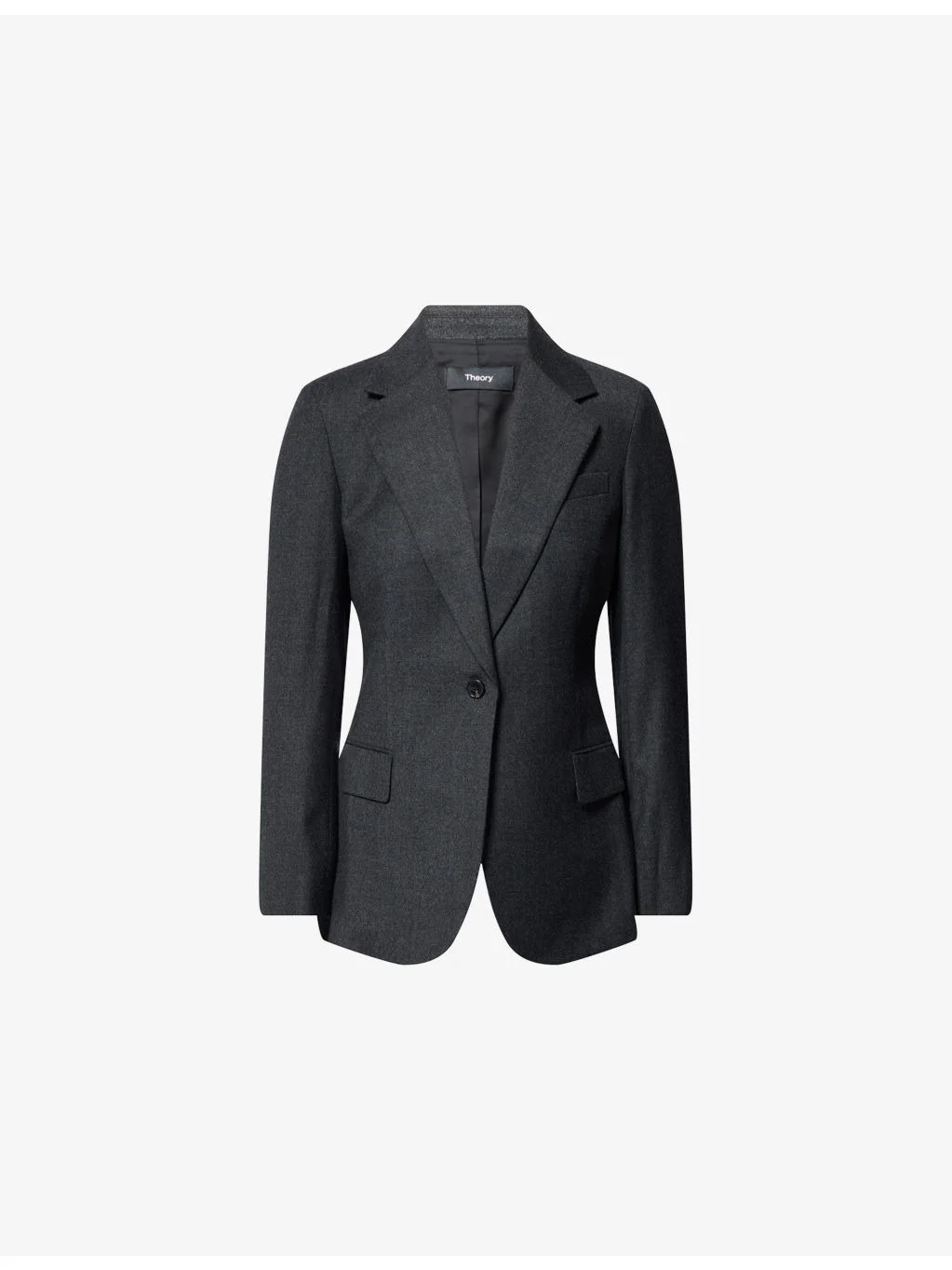PRODUCT DETAILS - Theory wool blazer - 100% virgin wool; lining 100% cupro - Exposed button fastening at front - Slim fit, single-breasted, notch lapels, long sleeves, buttoned cuffs, welt and two flap pockets at front, fully lined, double vent - Dry clean - True to size - Size UK 8: length 27in / 69cm - Model is 5ft 10in/1.78m and wears a size UK 8 - Lightweight, stretchy Ref: R04531200